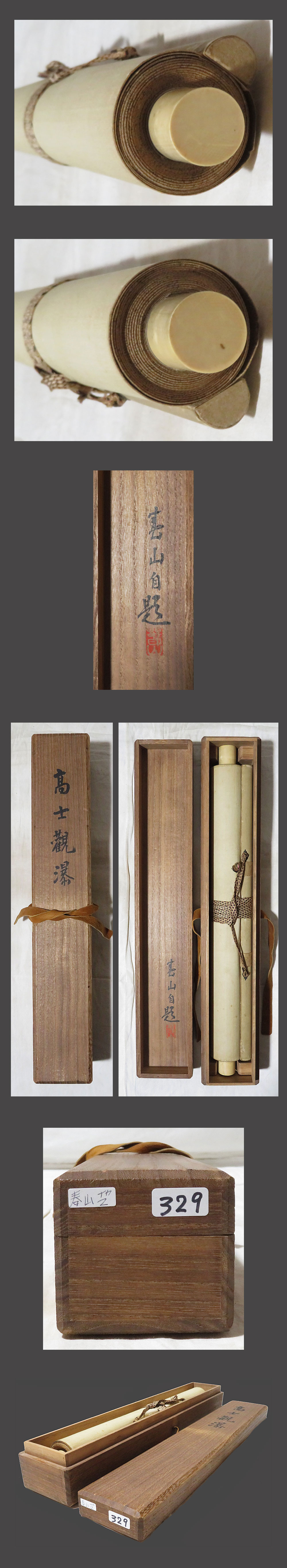・掛軸の軸先ですが、細心の注意を払って梱包しておりますが、 配送中の振動・気温・経年劣化等で外れてしまうことがあります。 軸先の外れは、破損ではございませんので、返品の対象にはなりません。 大変お手数ですが、お客様ご自身での修復をお願い致します。 ・添付写真の画像と説明文でご理解頂ける方、ご入札を宜しくお願い致します。 ・添付写真の画像は撮影の光度により、現物と若干の色合いの相違が生じる事があります。 ・添付写真の画像は受取完了のご連絡を頂いた後に速やかに消去しますのでご了承下さい。 ・土・日・祝日はお休みさせて頂きますので、商品発送は、月曜日以降になります。 ・祝日の場合は、翌日の平日以降の発送になります。 ・土・日・祝日は、メールの返信が若干遅れる事がございます。どうか、ご了承下さい。 ・時間的に余裕がない場合などでお答えが出来ない事も多々有ります。 ご不明な点は落札日前日までに早めにご質問下さい。 ・商品トラブルがあった場合は、直ちにご連絡下さい。 お取引に付きましては迅速・丁寧に対応させて頂きます。 ・落札後、できるだけ2日以内に連絡(返信)を頂ける方、 5日以内にご入金できる方の御入札を御願い致します。 ・新規の方や評価の総評が悪い方は当方の判断にて、入札取り消しを行う場合がございます。 ・お取引に付きましては、迅速、丁寧に対応致しますのでどうぞ、宜しくお願い致します。 ・古美術品や古物や古書画の出品が多いため、神経質な方がご入札される場合は、 ご自身が納得の行く価格でご入札ください。 ・万一、ヤフーのシステム障害により、公正なオークションができなかったまま終了し、 落札者様にご落札された場合は、当方より取引ナビで取引中止のご連絡を致します。 その時は、どうか、ご了承をお願い致します。 ・終了当日・直前の入札の取り消しは、 トラブルの原因となりますのでご遠慮お願い致します。 ・入札後の取り消し(キャンセル)は行っておりません。 ・落札後のキャンセル・返品はお断りしてます。 入札前によくご確認頂き、間違いのないようにご注意下さい。 |