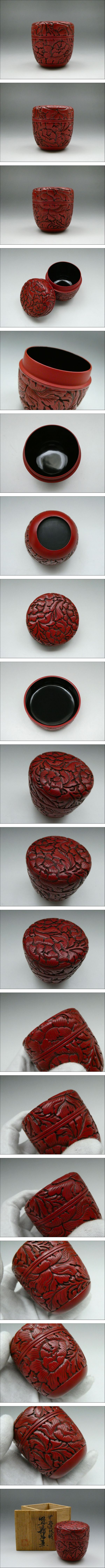 | ★商品★ ・棗【牡丹文堆朱棗】 ★寸法★ ・高さ (約)7cm ・胴径 (約)6.5cm ★重量★ ・(約)51g ★付属品★ ・桐箱 ・栞 ★状態★ ・目立った傷、汚れ、変色は見られません。 ※備考※ 商品状態に関しては、あくまでも当方の見立てとなります。 程度には個人差がございますので、商品画像を良くご覧になられた上でのご入札お待ちしております。 |