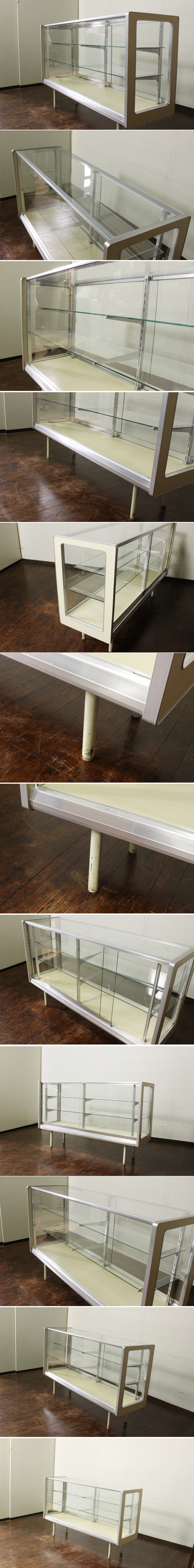 スタイリッシュなシンプルなアルミ枠、棚板は2枚で高さ調整も可能です。 前開きのレイアウト、多段収納で収納力もあり、コレクションの陳列や収納には勿論、 店舗のショーケースとしても良い雰囲気を演出してくれる事でしょう。 発送は脚を外して発送いたします。 |