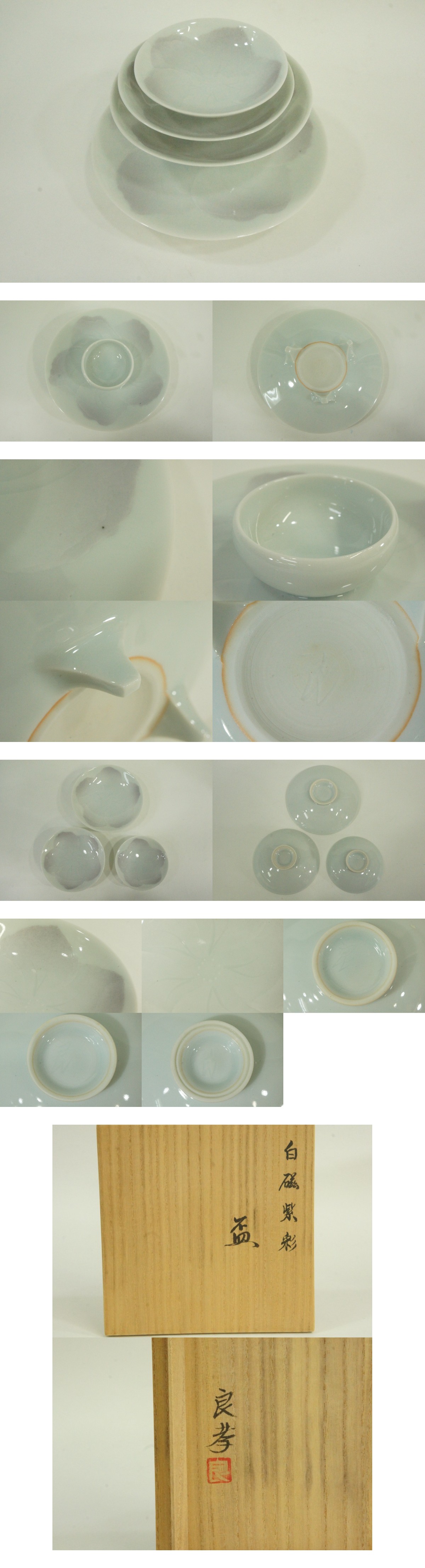 加藤良孝の白磁紫彩盃と盃台の計4点セットです。