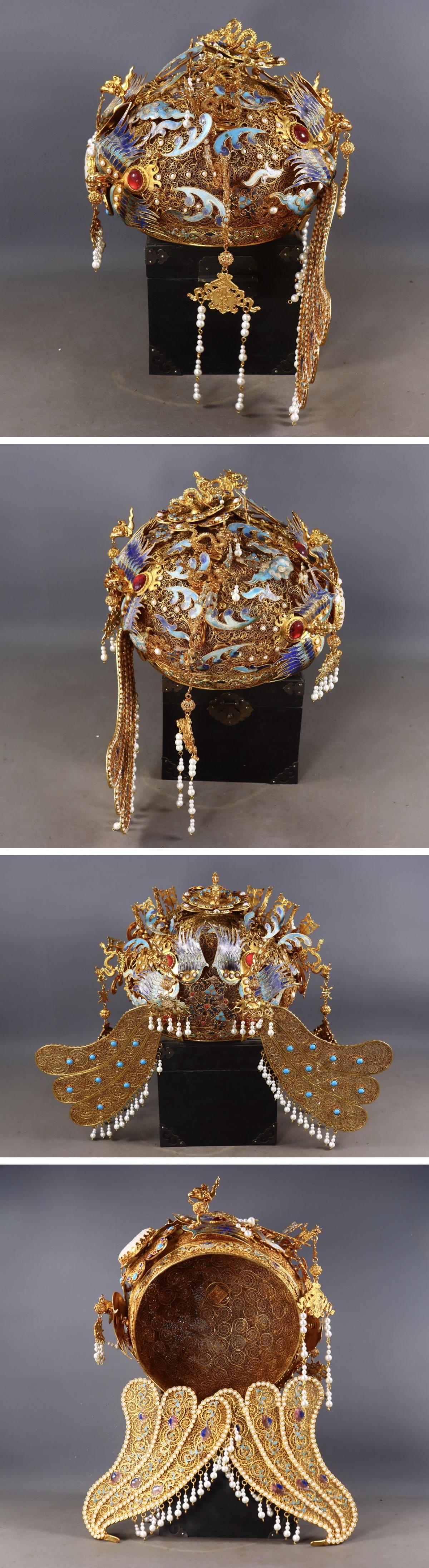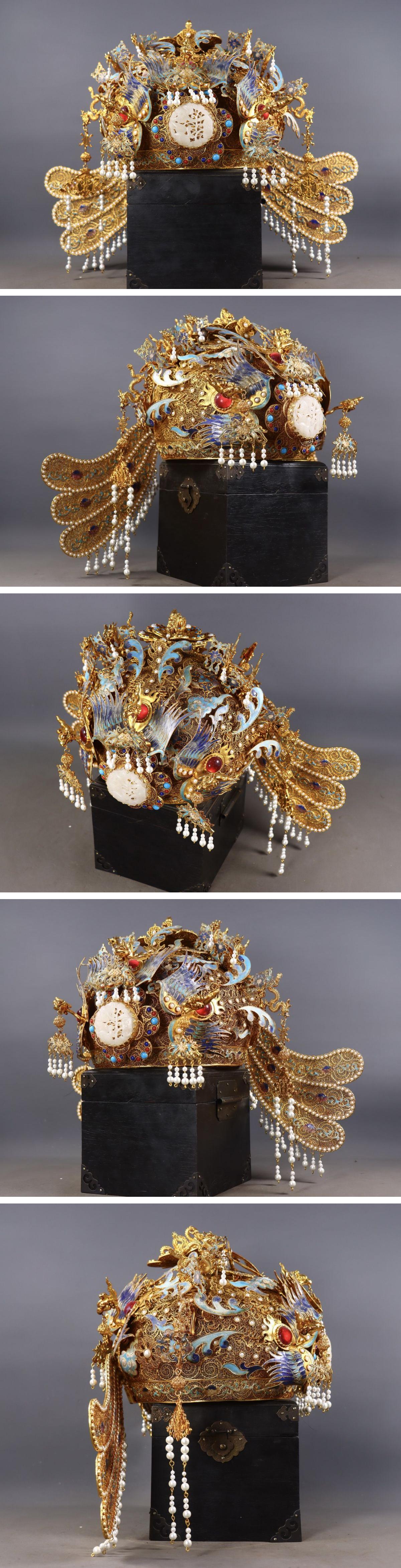 【清】関西某オークション購入 中国伝来 時代物 純銀材 象嵌寶石 鳳冠 当時物 時代コレクション7L12-ZQ8