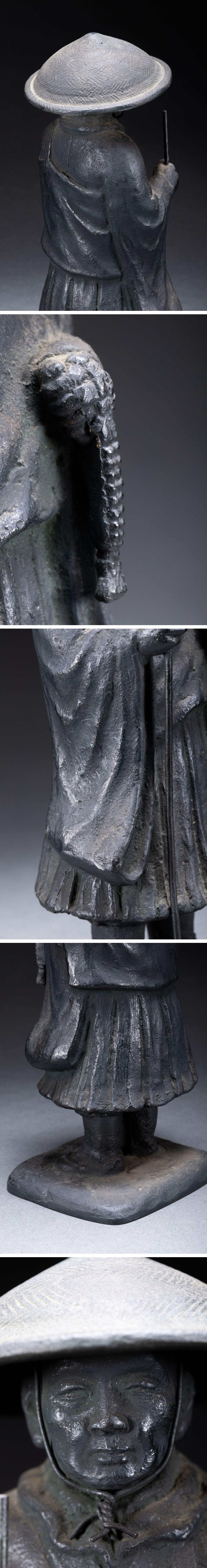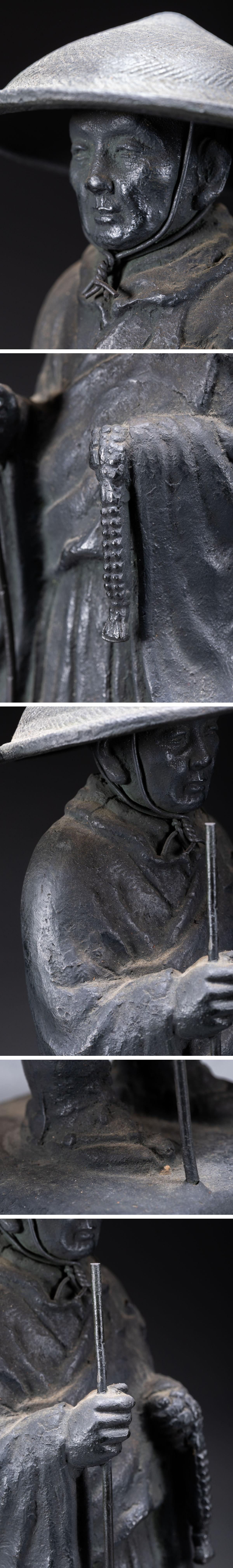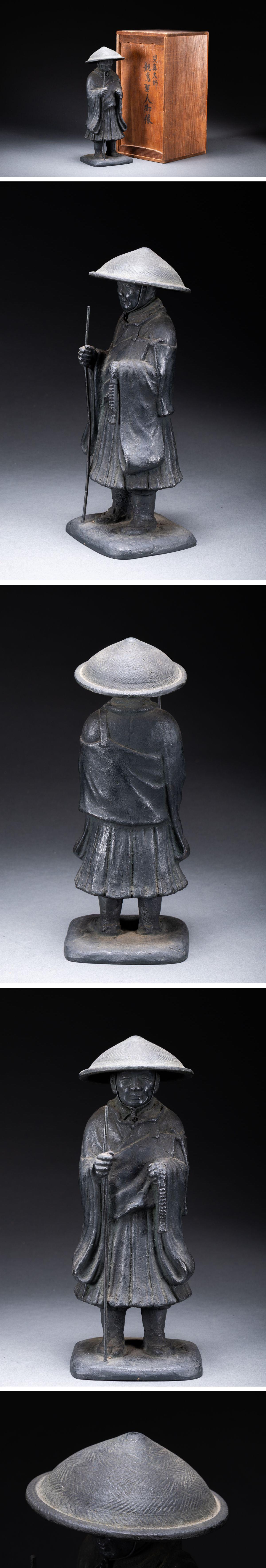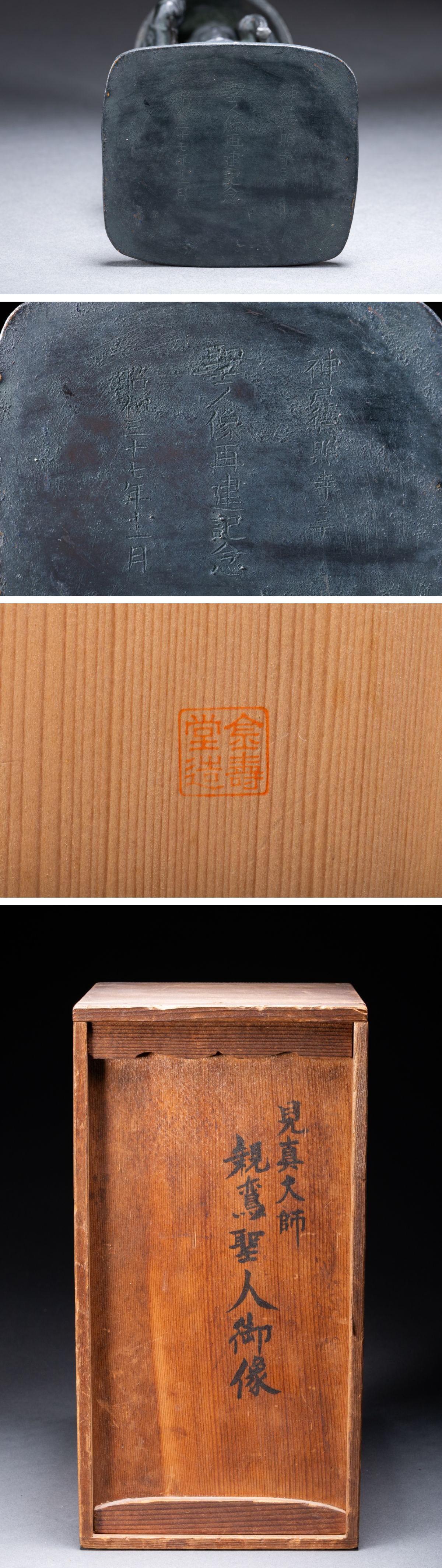 【清】関西某オークション購入 昭和時代 見真大師 親鸞聖人御像 ブロンズ 共箱 極細工 古置物 古擺件 仏教古美術7L6-342S1