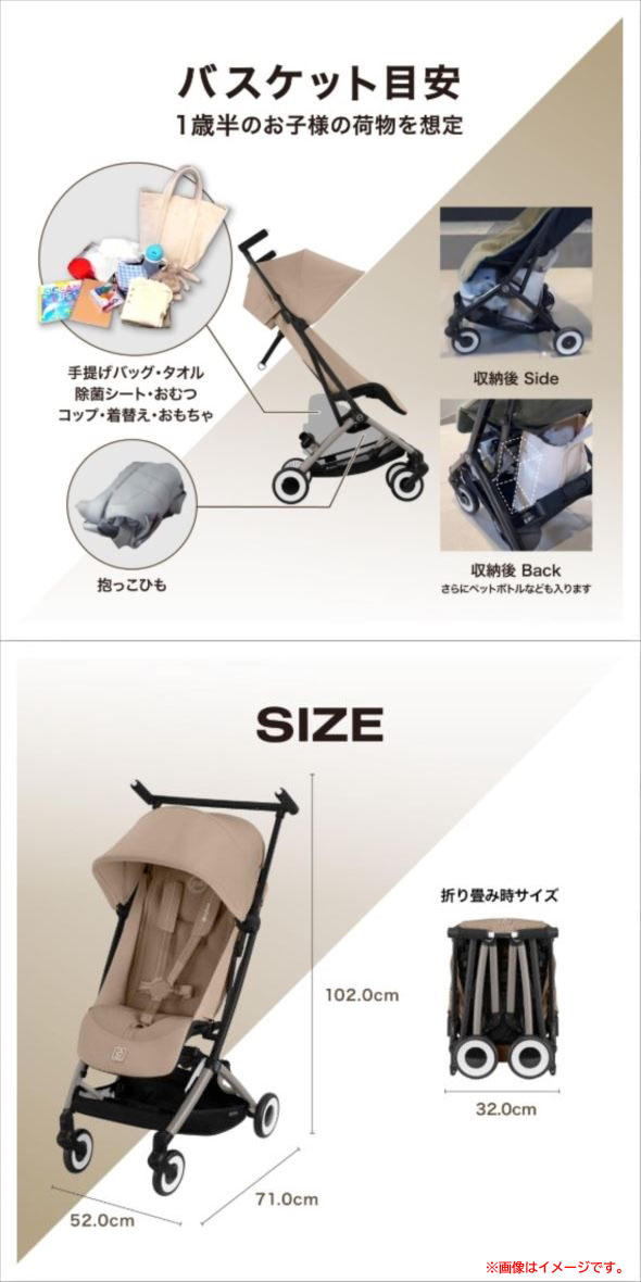 【商品特長】 ●ウルトラコンパクト設計 ・折りたたむと自転車のカゴに入る*ほどのウルトラコンパクト設計。(*自転車の種類に依存) ・電車移動もストレスフリー:改札もスムーズに通過できます。 飛行機・新幹線・バス・電車・タクシーなど、さまざまな移動手段に対応し、旅行や帰省など長時間の移動に便利です。 ・飛行機では機内持ち込み**ができるので、搭乗直前まで使用できたり、万が一の破損や紛失の不安が軽減されます。 (**事前に航空会社の規定をご確認ください) ・自立するので車のトランクや玄関など限られたスペースでも置き場所を圧迫しません。 ●長期使用可能 ・サイベックスのベビーシート+専用カーシートアダプター(別売り)を取り付けることで、新生児からご使用可能です。 ・シート幅と背もたれの高さは、体重22kg(4歳頃)まで使えるたっぷりなシートサイズ。 ●機能性・利便性 ・姿勢よく座れる:バックレストがフラットになり、約100°までしっかりと起き上がります。 ・瞬時にフィット:革新的なハーネス調節機能「ワンプルハーネス」でストラップを引くだけでお子さまの体に瞬時にフィットします。 ・操作性抜群:ワイドハンドル&ダブルグリップ設計で、力が効果的に前輪へ伝わり、スムーズなハンドリングと安定した走行を実現します。 | |||||||||||||||