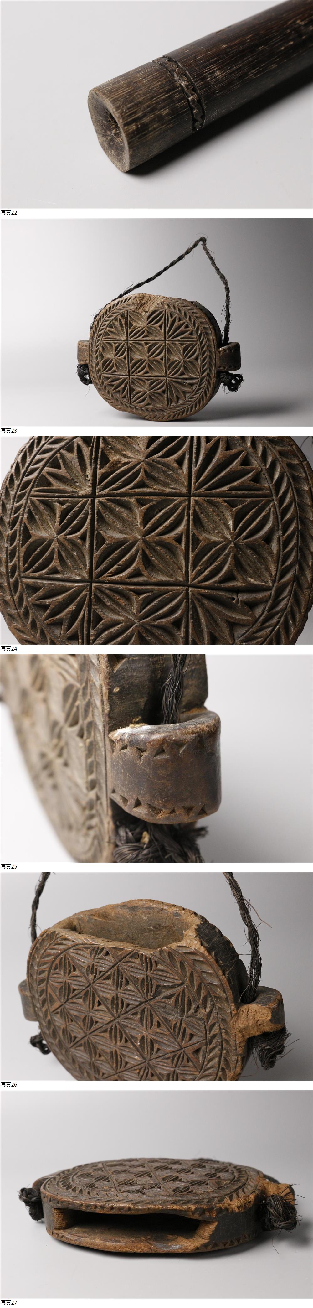 25120315* * * 商品詳細 * * * ここでしか出逢うことのできない唯一の美をご紹介させて頂きます。 台湾 パイワン族の剣外装をはじめとした木彫工芸品です。 外装には人物の顔が彫刻されており、 独特の雰囲気と思わず目を惹きつける強い存在感があります。 時代を経た木肌は風合いも良く、深みのある色彩が一層時代を感じさせます。 細密な彫刻も素晴らしく、民族の持つ美意識と価値観がよく表れた逸品です。 この機会に是非お求めください。 ■商品内容/剣外装 他全4点 ■サイズ/最大全長39㎝ ■状態/スレ、キズ、欠け、割れ、サビ、剥げ、紐にほつれ、ちぎれ、 経年による傷みがございます。 ※写真にてご確認、ご了承の上ご入札下さい。 * * * 支払詳細 * * * !かんたん決済 * * * 発送詳細 * * * 入金確認後3営業日以内に発送致します。 ※直接引き取りも可能です。 60~160サイズにつきましては 佐川急便、ゆうパックのどちらかで発送いたします。 ゆうパック発送の場合、弊社の発送日から追跡サービスに問合せ番号が反映されるまで 約1日ほどお時間がかかりますのでご了承下さい。 * * * 注意事項 * * * 運送中の破損があった場合は速やかに当社までご連絡下さい。 保険を利用するのに受取連絡後に運送会社による現場での破損状況確認が必要となります。 勝手に返送されますと保険の適用外となりますのでご注意ください。 * * * * * * お問い合わせ:082-236-8669 |