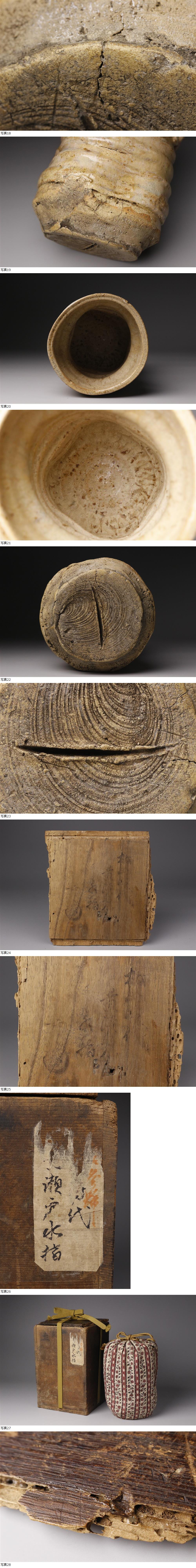 26010921 A* * * 商品詳細 * * * ここでしか出逢うことのできない唯一の美をご紹介させて頂きます。 桃山の侘びと織部好みを今に伝える逸品 ― 桃山時代 瀬戸十作【元蔵】一印 黄瀬戸 耳付水指(時代箱・仕覆付) 桃山時代、武将茶人・古田織部の指導のもとで瀬戸・美濃の地に花開いた革新的な茶陶。その中心的存在として知られる陶工群が「瀬戸十作」です。本作は、その瀬戸十作の一人【元蔵】と思われる一印を底部に有する、黄瀬戸耳付水指です。 写真からもご覧いただける通り、柔らかく枯淡な黄瀬戸釉に、自然な貫入と土味が溶け合い、桃山茶陶ならではの力強さと侘びの趣が感じられます。胴部の穏やかな轆轤目、控えめながら存在感のある耳付造形は、織部好みを想起させ、茶席において静かな緊張感と格調をもたらします。 底部には一印が確認でき、瀬戸十作・元蔵系統の作を想起させる重要な見どころとなっています。元蔵本人作を保証するものではありませんが、時代性・作行きともに桃山期黄瀬戸の魅力を十分に備えた、由緒ある時代物といえる一品です。 時代箱および仕覆が付属しており、鑑賞用としてはもちろん、取り合わせ次第で実用の茶席にも映える格のある水指です。 桃山の息吹と茶の湯の精神を感じさせる逸品を、ぜひこの機会にお手元でお楽しみください。 ■商品内容/水指、仕覆、時代箱 ■サイズ/横12.5cm×高20.5cm 箱:横15.3cm×高24cm ■状態/スレ、キズ、釉薬にヒビ、欠け、窯被、 箱にスレ、キズ、腐食、欠け、経年による傷みがございます。 ※写真にてご確認、ご了承の上ご入札下さい。 * * * 支払詳細 * * * !かんたん決済 * * * 発送詳細 * * * 入金確認後3営業日以内に発送致します。 ※直接引き取りも可能です。 60~160サイズにつきましては 佐川急便、ゆうパックのどちらかで発送いたします。 ゆうパック発送の場合、弊社の発送日から追跡サービスに問合せ番号が反映されるまで 約1日ほどお時間がかかりますのでご了承下さい。 * * * 注意事項 * * * 運送中の破損があった場合は速やかに当社までご連絡下さい。 保険を利用するのに受取連絡後に運送会社による現場での破損状況確認が必要となります。 勝手に返送されますと保険の適用外となりますのでご注意ください。 * * * * * * お問い合わせ:082-236-8669 |