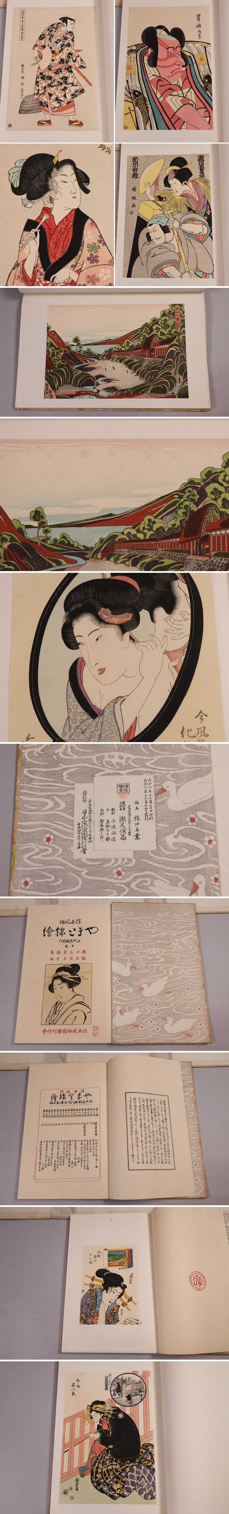 ◇【4】手摺浮世絵木版画 大正期 浮世風俗 やまと錦絵 橋口五葉 鏑木清方賛助 60図上中下3冊揃 江戸末期時代【CM421】◇