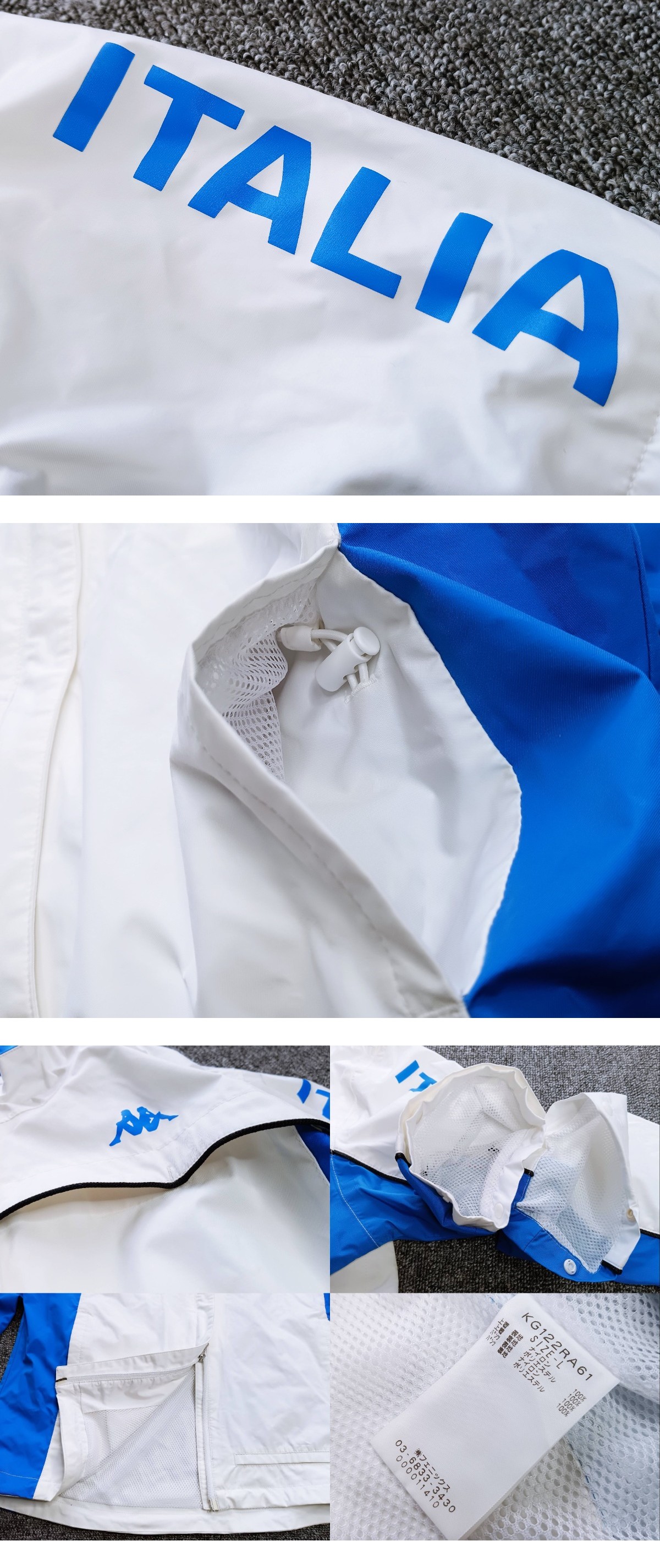 左胸に「カッパ」ロゴ、左袖に「ITALIA」のロゴがデザインされています。