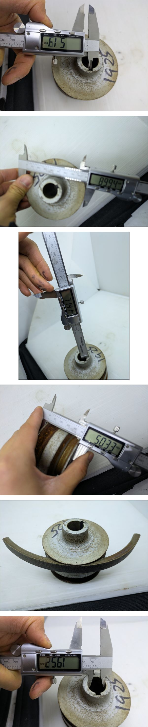| ●●最後まで読んで下さい●●納得した上でご入札してください●● ●機械専門アカウントは**こ ち ら**です。 ●当方の別出品物を同時購入しても送料分安くなりません。 ●発送料金は入札ボタン付近にあり、沖縄、北海道、離島以外一律です。 ●塩尻市から発送します。 ●離島発送はできない場所がございますので、事前にお問い合わせください。 ●発送日は月、水、金、日です。急ぎの場合はご連絡をお願いします。 ------------------------------------------------------------------------------------------- ●2連のプーリーです。 ●Bベルトです。 ●軸 径:約Φ20mm ●鍵 幅:約5mm ●プーリー外径:約Φ90mm ●全体 厚さ:約71mm ●ベルト部 厚さ:約50mm ●書いたインクは消さずに発送します。 ●素人寸法のため、測定誤差があります。 ●中古品のため、サビや汚れがあります。 ●錆は各自で取り除いてください。 ●現状写真の通りのまま送ります。 ------------------------------------------------------------------------------------------- ●下の方にも画像がございます。※たまに写真の枚数が不足していて画像がない場合があります。 ●落札後、ご指定配達の時間帯がある場合はあらかじめご連絡してください。 | |||