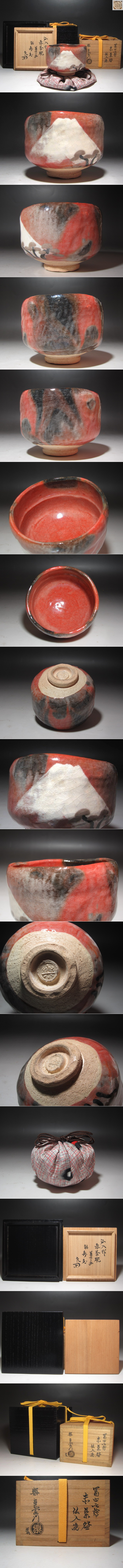 ★楽吉左衛門十二代弘入 赤 富士絵茶碗 寿老 二重箱 表千家十二代惺斎花押・楽吉左衛門十四代覚入極めがございます★x676