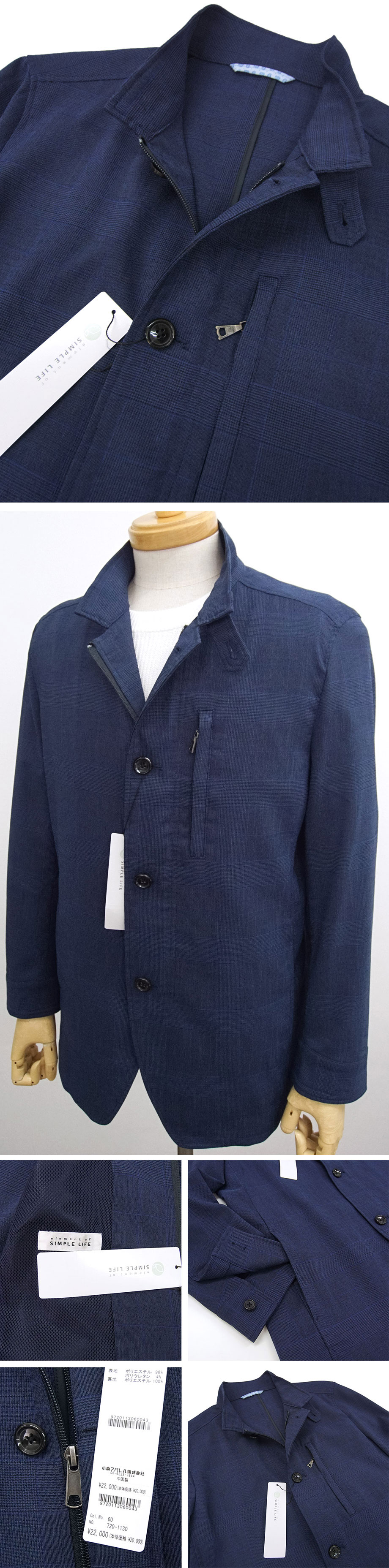 新品・未使用 【SIMPLE LIFE/シンプルライフ】春夏 優れたストレッチ 清涼 ジャケット(ブルゾン)(タグ付き)。