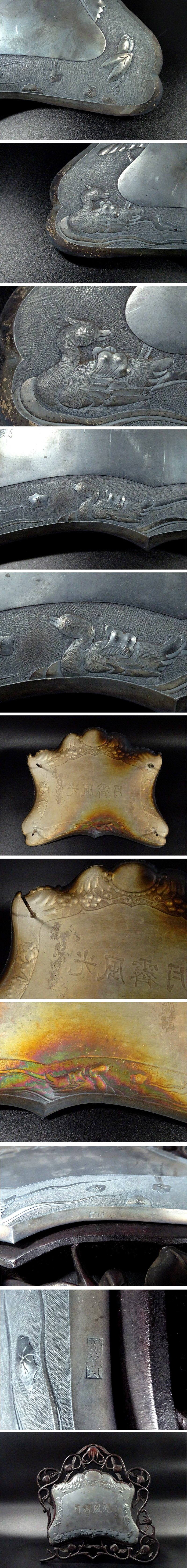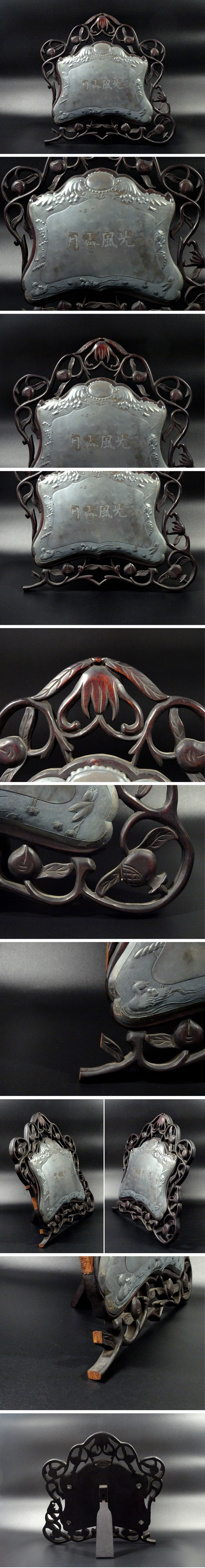 状態も良好    画像でもお分かりのように、向かって左下部分の紅木枠にカケは見られます。   その他、多少の汚れ、銀製品特有の変色、経年劣化は見られますが、大きな傷みもなく、状態も良好です。