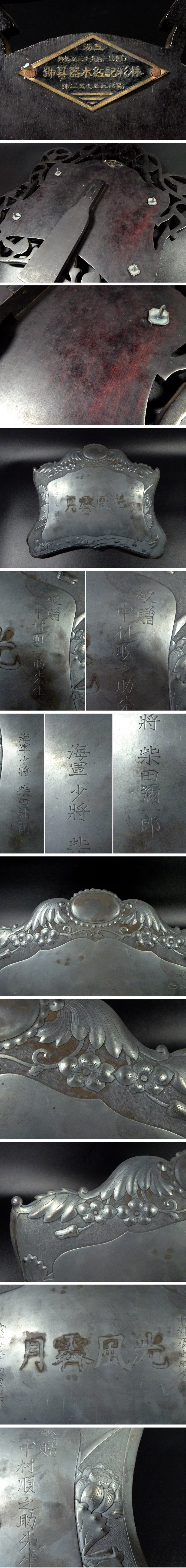 敬逢 大日本帝国 海軍中将 柴田彌一郎氏 敬贈 純銀製 鎚起花鳥紋 上海唐木紅木透彫枠 純銀軍楯 旧日本軍 勲章 勲記 天皇 [浏览原始页面]