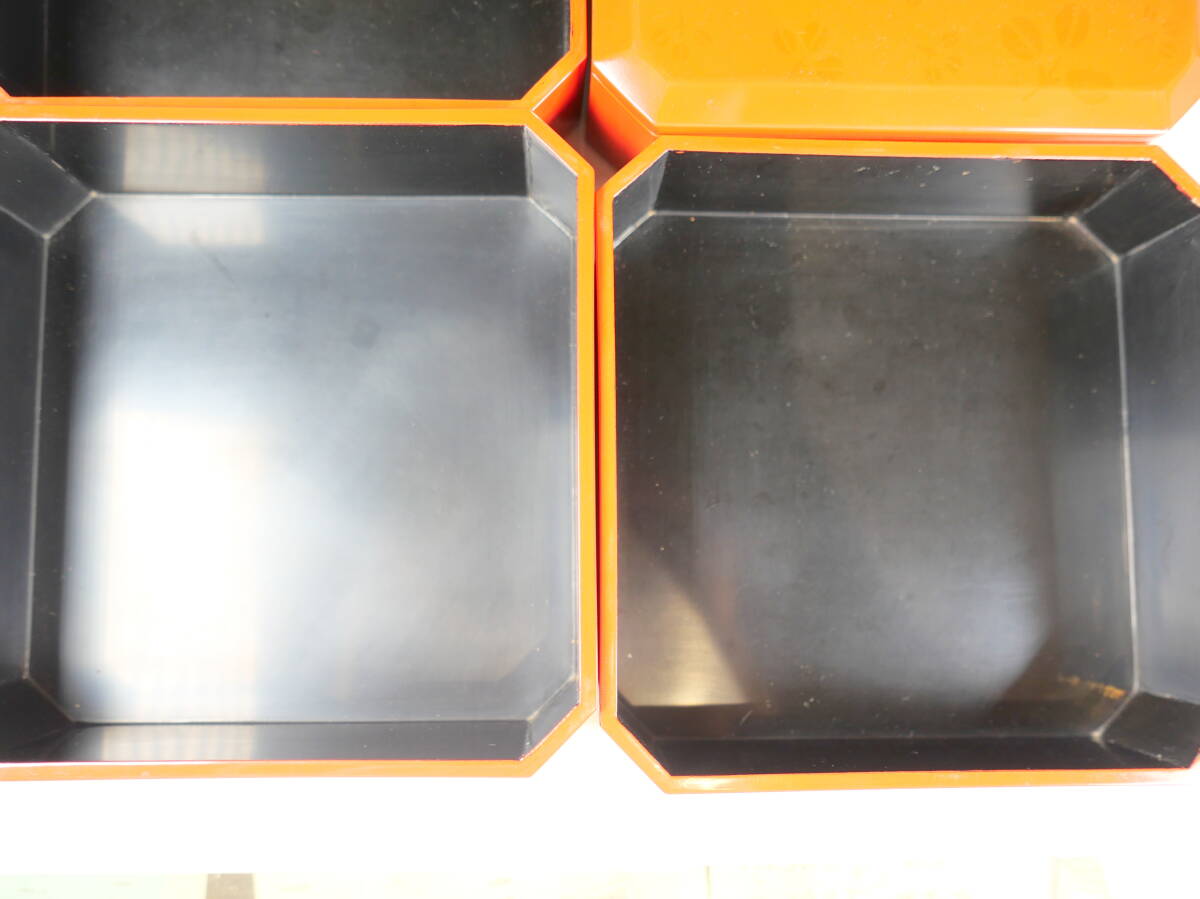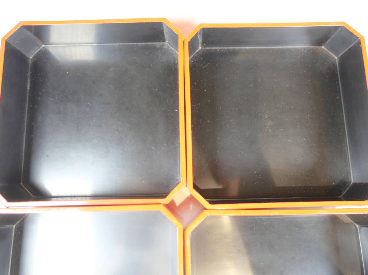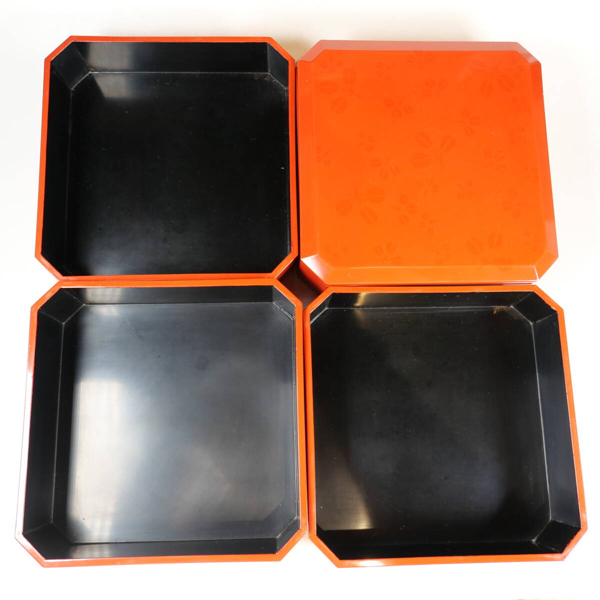 | 中古★木製 漆器 四段重箱 165×165mm 共箱付 | ||
