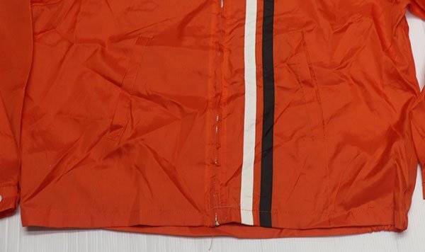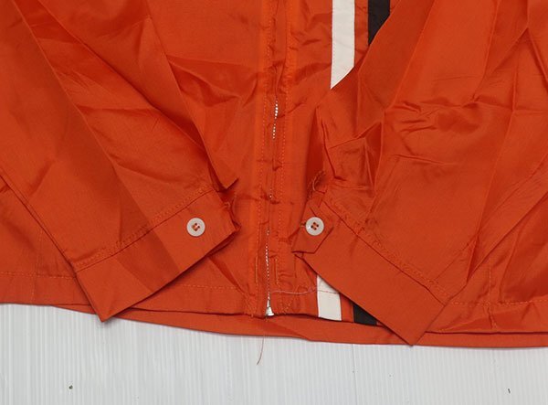 アメリカ買い付けの80年代頃のアメリカ製(表記はございませんが)のナイロンジャケットのオレンジ系x白系x黒系ラインのパッチ貼り付けでPRIDE製ZIPです。