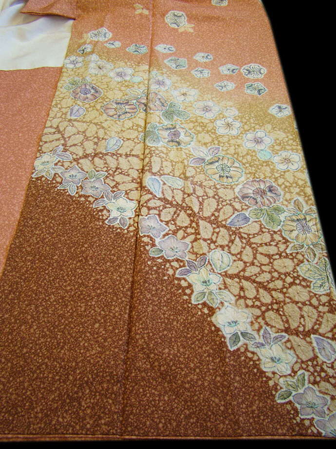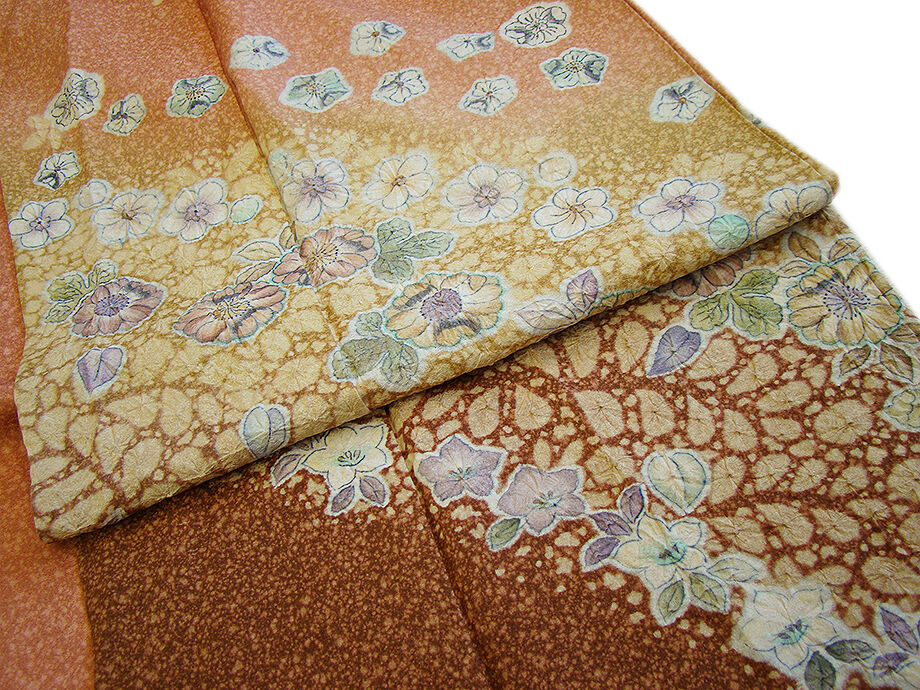 商品説明 | こちらのお品は「袷」でございますので、10月~5月までお召頂ければと思います。 しなやかで柔らかな手触りの着心地良い重めのちりめん地の変り織の生地、 ときがら茶色地に裾にかけてベージュ色、茶色の三段ぼかし染に、 絞って染めての匠の手技を駆使した人気の辻ヶ花の染柄、 共八掛(正絹)、幅広い年代の方にお召頂けます。 |