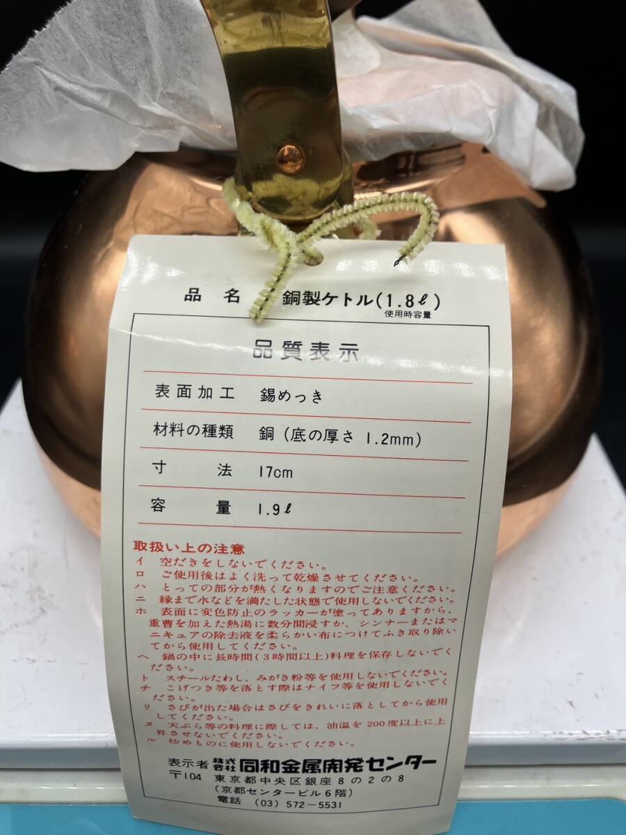 | ◆◇NO109 【新品・未使用】同和金属開発センター 銅製ケトル1.9L 茶道具 湯沸かし ◇◆ | ||