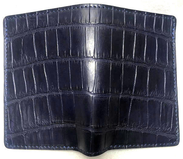 色は綺麗な「ネイビー(クロコダイル)×ブラック(ベース)」、使い込むごとにエキゾチックレザー独特の上品な艶が現れ、とても雰囲気が良くなります!