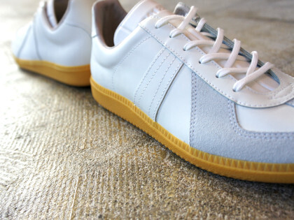 ★ 商品詳細 ★ 【 商品名 】 GERMAN ARMY TRAINER / ジャーマン アーミー トレーナー 【 サイズ 】 45(28.5~29.0cm) 【 商品番号 】 GAT-1000 【 カラー 】 ホワイト/HONEY 【 定価 】 ¥28,600 【 素材 】 COWレザー / BW 【 生産国 】 SERBIA製 【 状態 】 新品・良品・未使用品 【 付属品 】 専用ボックス ★ 商品コメント ★ 1980年代より旧ドイツ軍の屋内トレーニング用 スポーツシューズとして納入されていた通称「ジャーマントレーナー」。 1994年時点で一旦プロジェクトは終了しましたが、1999年ドイツ軍物資部主導のもと、 新たにプログラムが始動し、現在も官給品として ドイツ連邦軍に正式支給されている唯一のミリタリーオフィシャルシューズです。 |