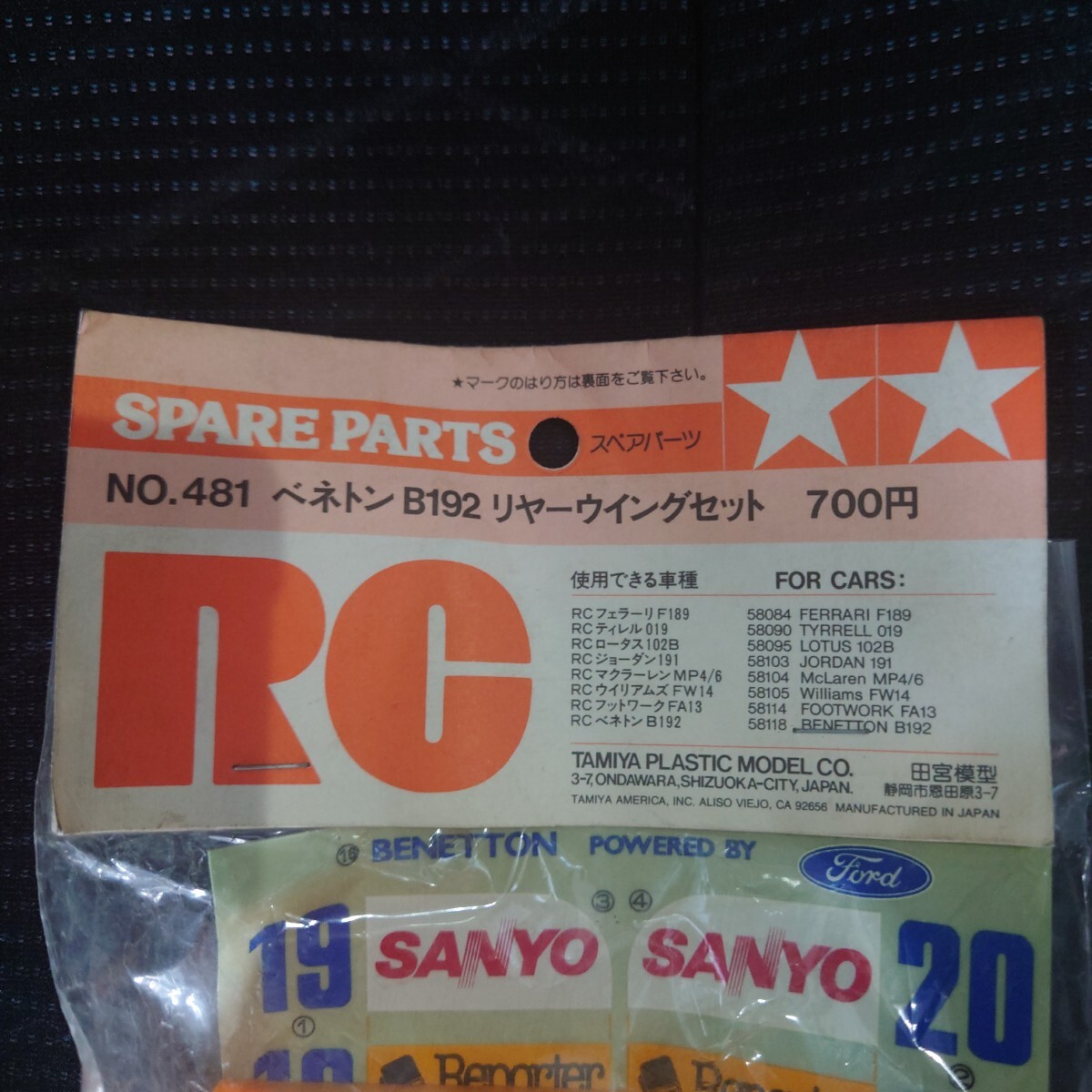 | ◆蔵出し タミヤ No.481 ベネトンルノーB192リヤーウイングセット F102 F103 TAMIYA ITEM.50481◆ | |||||