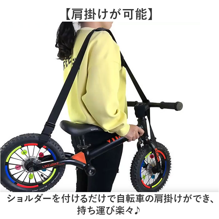| 商品説明 | ・・【お子様の自転車の持ち運びに】 ・公園帰りなどお子様の自転車の持ち運びに便利なキャリーベルトが新発売。 ・【肩掛けが可能】 ・ショルダーを付けるだけで自転車の肩掛けができ、持ち運び楽々♪ ・【肩に負担が掛かりにくい】 ・ベルト部分に肩パッドを装備し、肩への負担を軽減。ズレない滑り止め付きなのも◎ ・【取り付け簡単】 ・持ち上げたい箇所にベルトを通してフックに留めるだけ☆ワンタッチで留めるカラビナタイプ。 ・【コンパクトに収納】 ・使わないときは小さくたためて携帯にも便利!バッグに入れて持ち歩ける。 ・【パパさんも使いやすい】 ・黒のワンカラー仕様で、パパさんも使いやすい見た目◎アジャスターで長さ調節も可能。 |