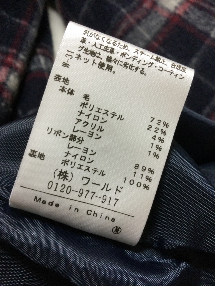 このお品は秋向けです。 毛72%、ポリエステル22%、ナイロン4%、アクリル1%、レーヨン1% リボン部分はレーヨン89%、ナイロン11% 裏地はポリエステル |