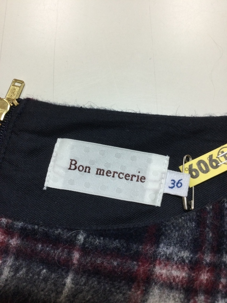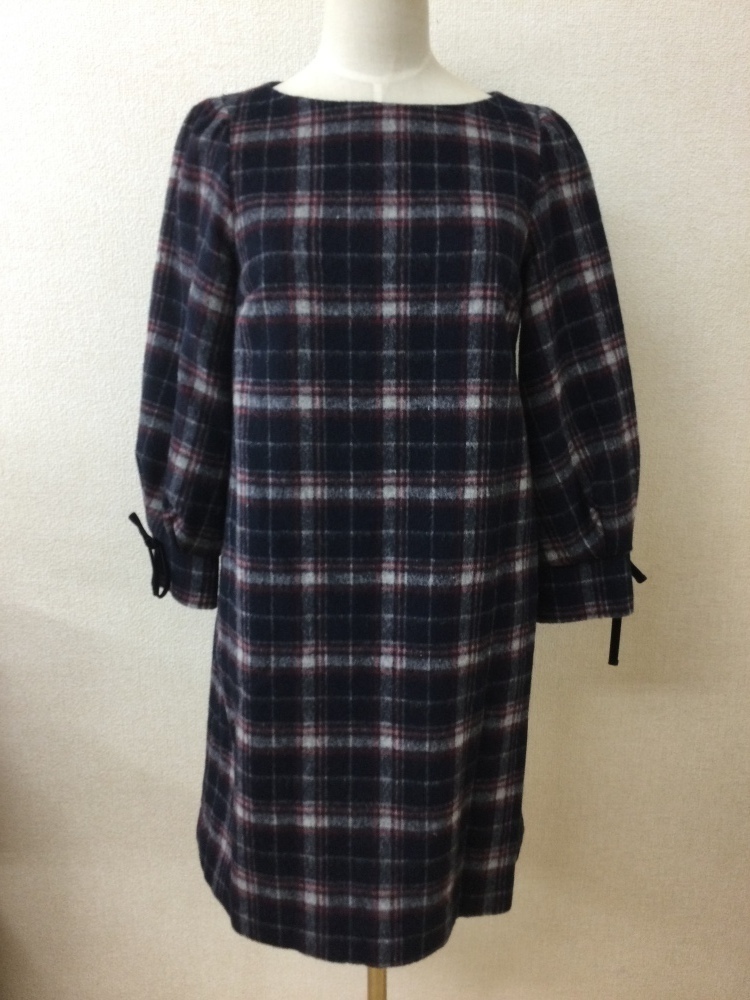 | 管理番号:99^131807 ボンメルスリー 紺のチェック柄ワンピース プルオーバー 表示サイズ:36 実寸(参考)