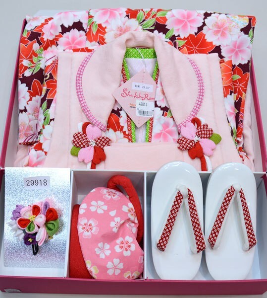| 項目 | 三歳被布着物フルセット ・着物 ・長襦袢 ・被布コート ・巾着 ・髪飾り ・草履 ・伊達衿(縫い付済) ・付け紐2本(着物縫付済) ・着付け説明のご案内(ご要望のお客様のみ、詳しくは以下明記しております) |