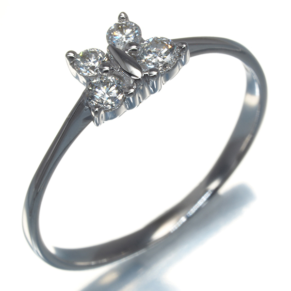 瑞々しい輝きを放つ4石のダイヤモンドで描かれた蝶がお手元を飾るバタフライリング。キラキラと舞う繊細な輝きをお楽しみください。 |