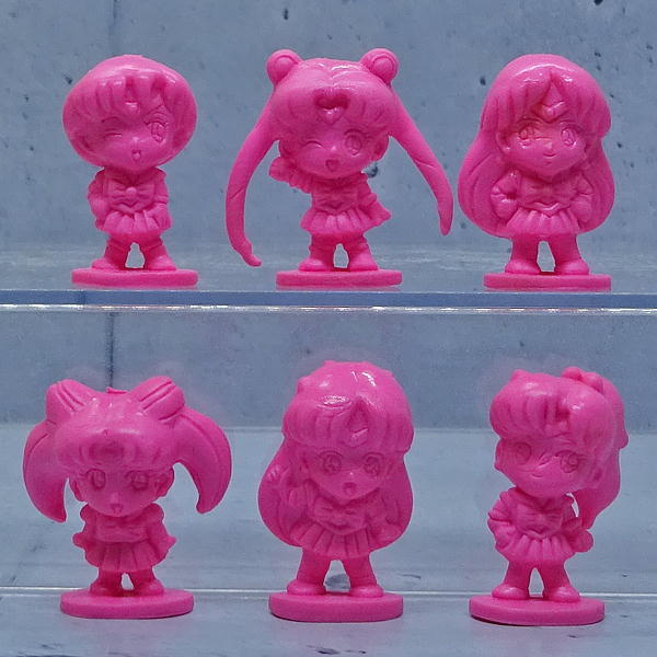 ☆バンダイの食玩「セーラームーンS キャンケースDX」に入っていたセーラームーン、セーラーマーキュリー、セーラーマーズ、セーラージュピター、セーラーヴィーナス、ちびうさのミニフィギュアです。 |