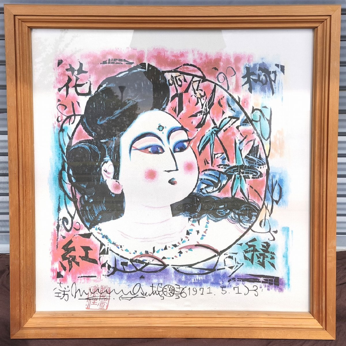 額縁(横×縦×厚さ):約770×800×30㎜、状態ランク:C 商品は画像に写っているものが全てです。額縁裏側がガムテープで封じられているため詳細は不明ですが、調べたところ1970年に文化勲章を受賞した記念に同様のものが製作されているようです。またプライバシー保護のため、額縁裏にマジック書きされていた個人名は紙ヤスリで削りました。その他状態は画像をご確認ください。| 商品の状態ランクについて | ||