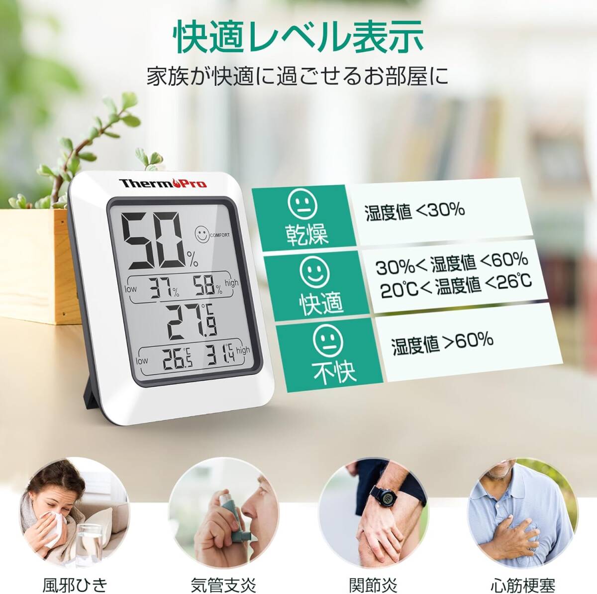 ThermoProサーモプロ 湿度計 デジタル温湿度計 室内温度計湿度計 顔マーク おしゃれ 最高最低温湿度表示 高精度 おしゃれ コンパクト 見やすい マグネット付き 梅雨対策 卓上 冷蔵庫 TP50