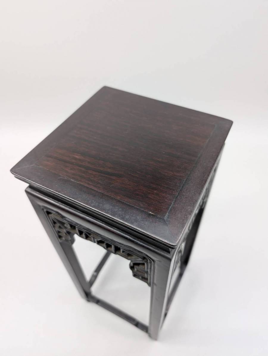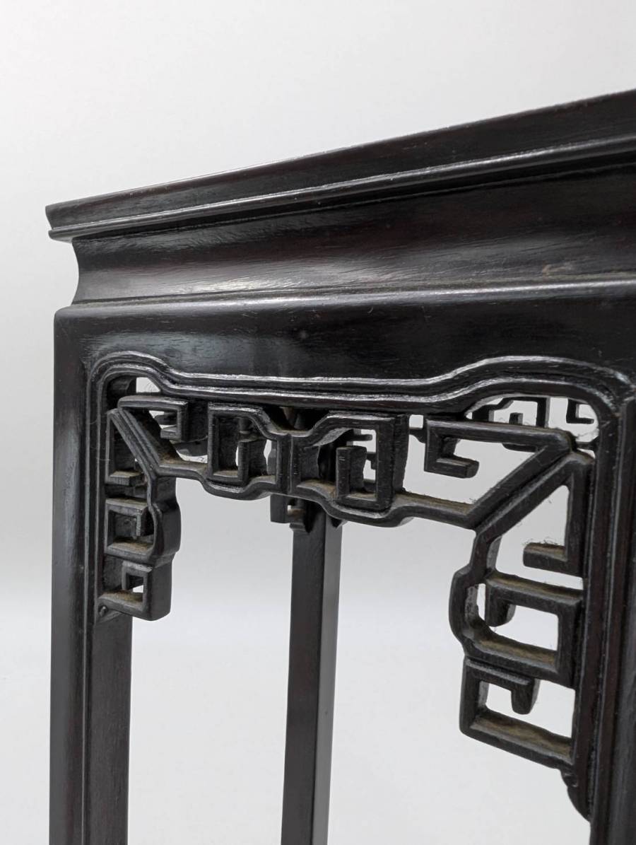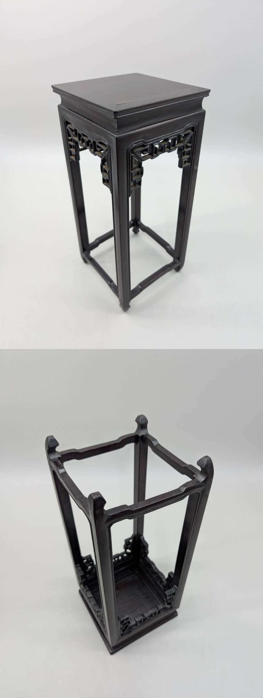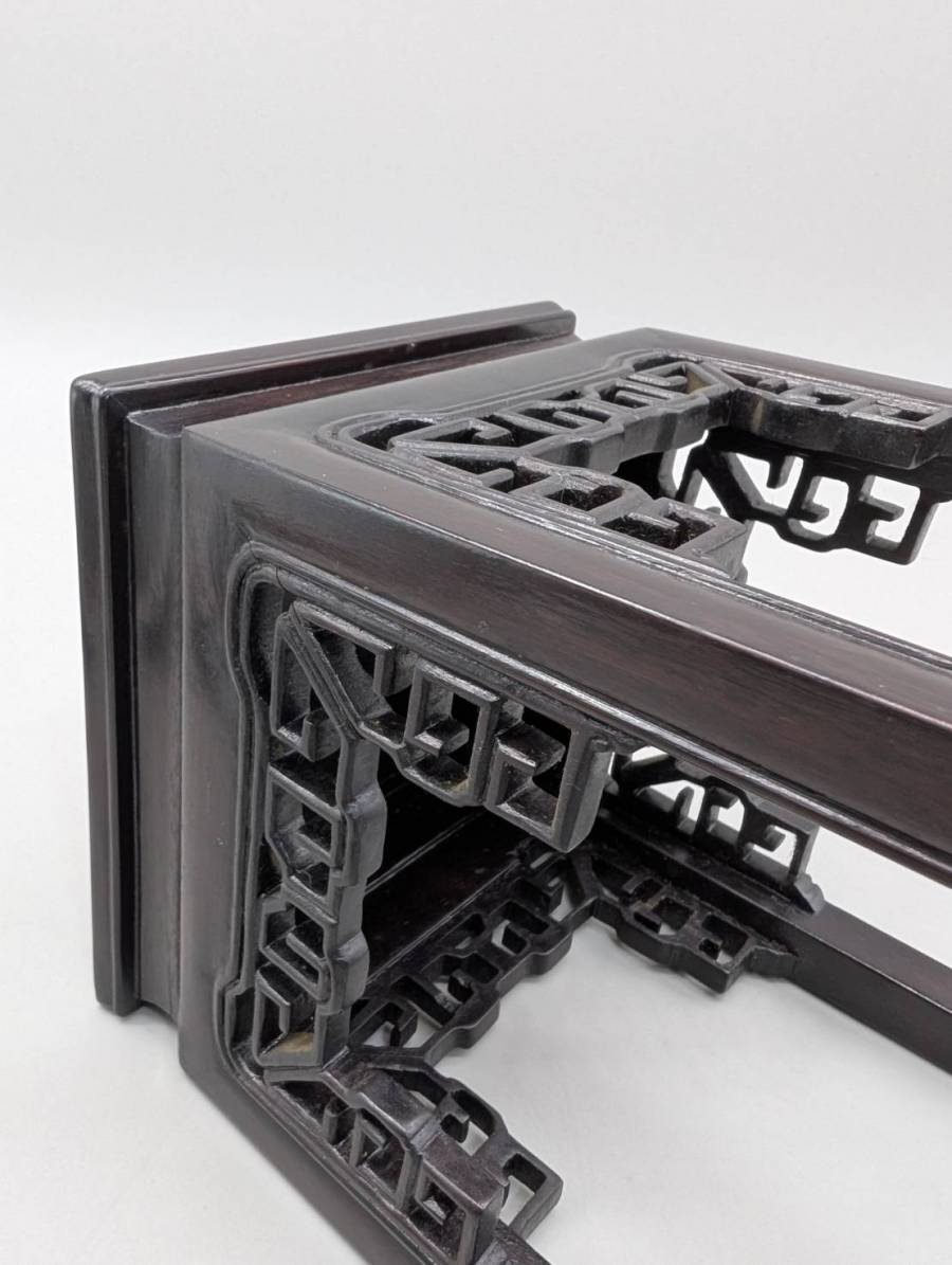 漆塗りで、側面に如意模様の透かし彫りがあしらわれています。
