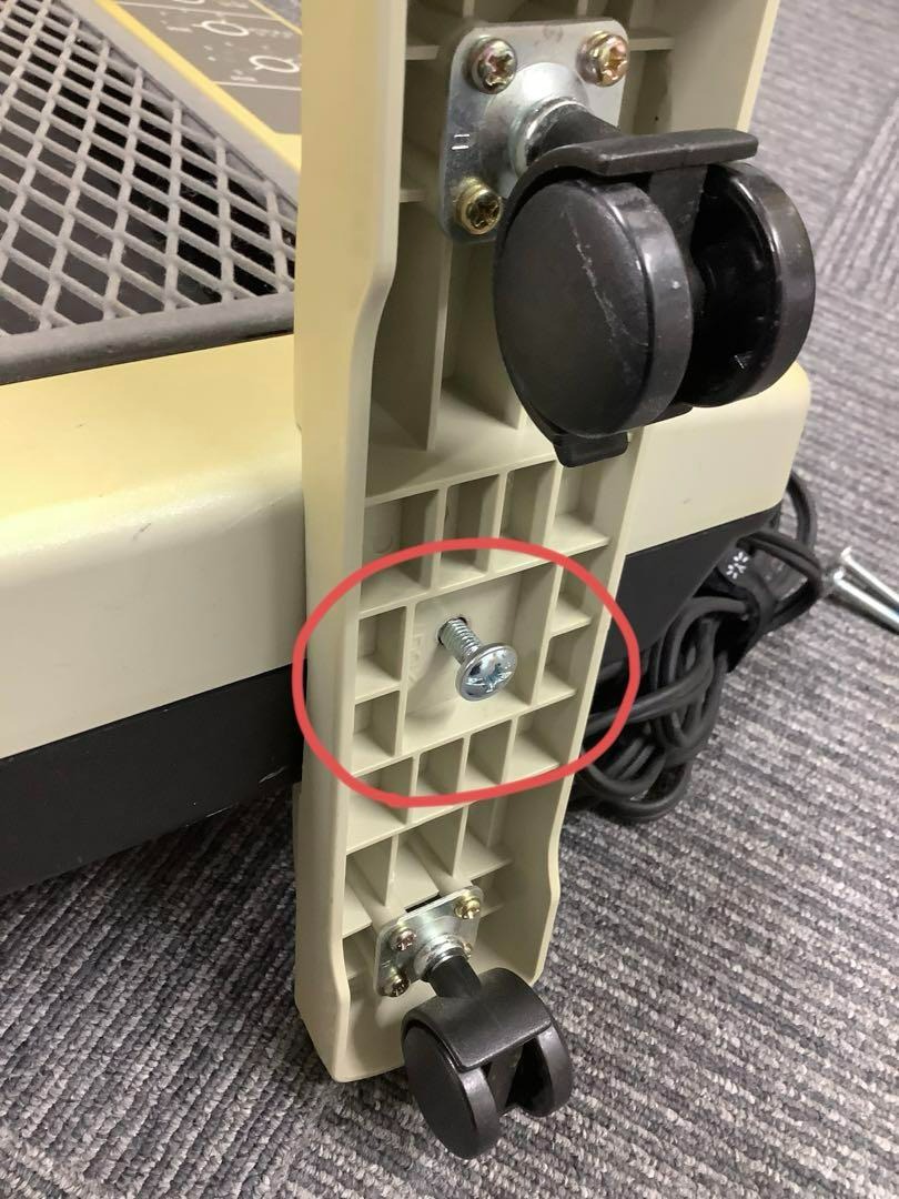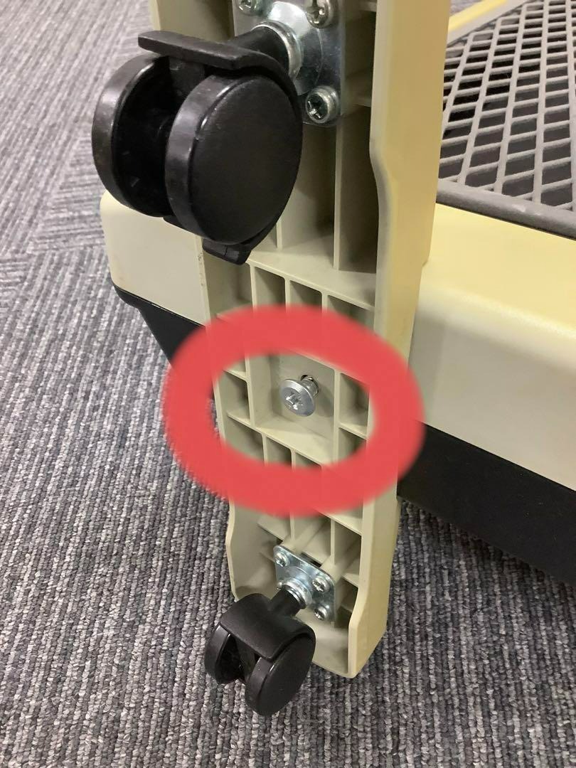 キャスター付きの脚のネジが欠品しており、代用ネジを使っております。画像11-12枚目