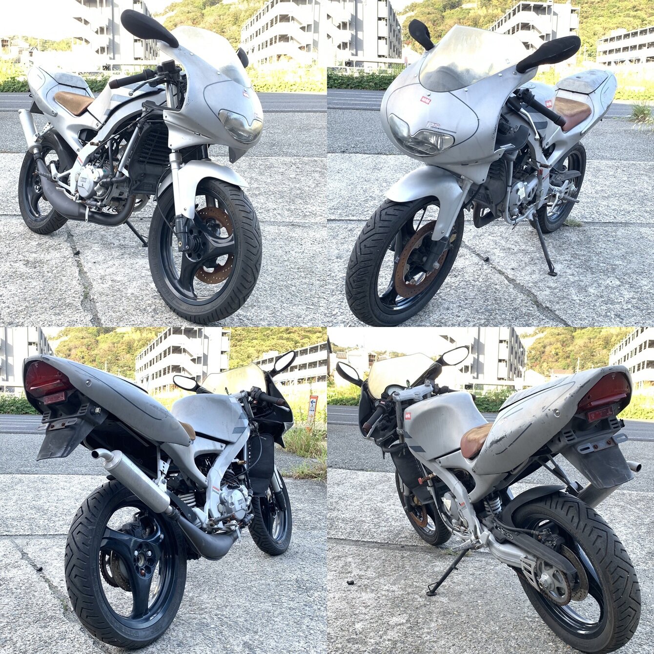 こちらの車両より取外したパーツ一台分を◆コチラ◆に出品しておりますので、ぜひご覧下さいませ。 ■商品詳細■ ☆フレーム・・・登録書類有! 目視で曲がりも御座いません! ☆エンジン・・・圧縮 約11.4kgf ☆フロントフォーク・・・インナーチューブ径 約30mm キャリパー取付ピッチ 約60mm ☆リアサスペンション・・・固定穴~固定穴 約265mm ☆Fホイール・・・グリメカ 16×2.15 ☆Rホイール・・・グリメカ 17×1.75 ☆Fタイヤ・・・ピレリ 90/90-16 ☆Rタイヤ・・・ピレリ 110/80-17 ☆ハンドル・・・幅 約57cm