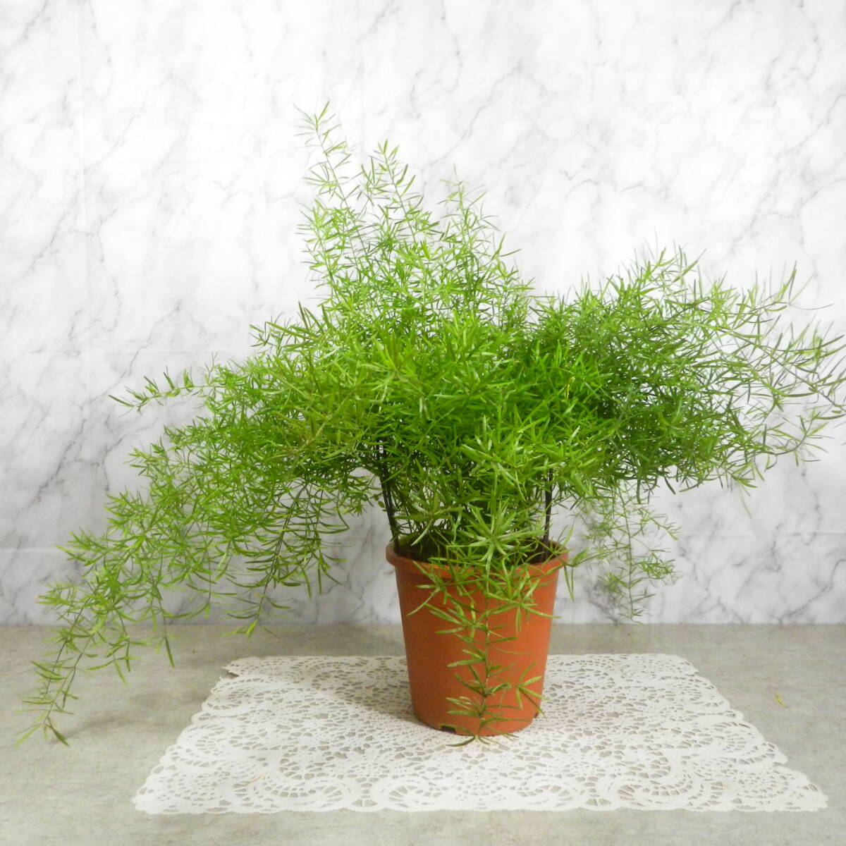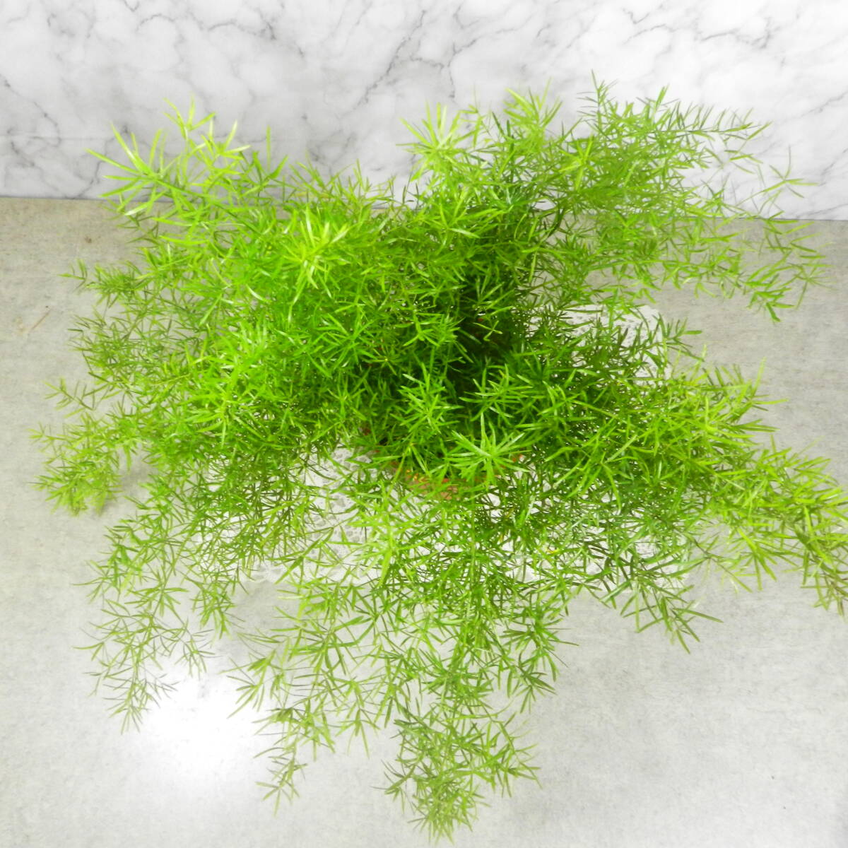 | 何個かの購入商品を一箱にまとめて発送する場合は、送料は一箱にまとめた発送時の箱サイズの送料となります。 一箱での発送希望の場合は、名前や住所等の連絡の前に、先に「まとめて取引」希望の連絡を当店にして来てください。 まとめて取引が大丈夫な場合は、当店より「まとめて取引」の設定をした後に、御連絡致します。 発送時の送料も、設定後に御連絡致します。一箱にまとめられない場合もありますので、その旨は御了解下さい。 NO:00101480 ■大きさ■ 高さ:鉢底より約35cm ※全体の大きさは、「コップ約12cm」と比較して見て下さい。 ■撮影日10月14日 アスパラガスの鉢物観葉となります。 科名:キジカクシ科(クサスギカズラ科:ユリ科) 属名:クサスギカズラ属 ※鉢はプラスチックの5号鉢です。 育てやすく管理しやすい、人気の観葉植物です。 観葉植物として栽培されているものは、野菜のアスパラガスとは別の種類です。 室内でも戸外でもしっかりと育つ、丈夫で育てやすい観葉植物です。室内では明るい室内などで育ててあげて下さい。 乾燥を嫌うので、定期的に水分をしっかりと上げて、室内であれば葉等は霧吹きをしてあげ、しっかりと土に水分を与えて育ててあげて下さい。 茎葉は割と伸びますので、伸びたら切って剪定してあげて下さい。綺麗な緑葉に人気のある観葉植物です。 写真を良く御確認のうえで購入を御願い致します。お部屋や戸外の飾りに如何でしょうか。 ※出品中に、気温の変化と共に葉の様子は変って行きます。その旨御了解の上で購入を御願い致します。 ***連絡事項・注意事項*** ※出品商品は植物ですので日々変化して行きます。出品中に気温の変化と共に出品商品の様子は変って行きます。その旨御了解の上で購入を御願い致します。 写真とは多少異なる場合もありますので、その旨御了解下さい。 ■日曜、祭日は、当店休業となります。御連絡及び発送は出来ませんので、その旨御了解ください。 夜19時以降の連絡は、翌日以降の連絡となることがほとんどですので、その旨御了解下さい。 ■配達日・時間の御希望■ ※配達日や時間指定がありましたら、御連絡下さい。 ※出品商品の盆栽の中には、盆栽鉢特有の細かな欠け・ヒビ・塗りヒビ・傷・汚れ等がある鉢もありますので、その旨御了解の上で購入をお願い致します。 |