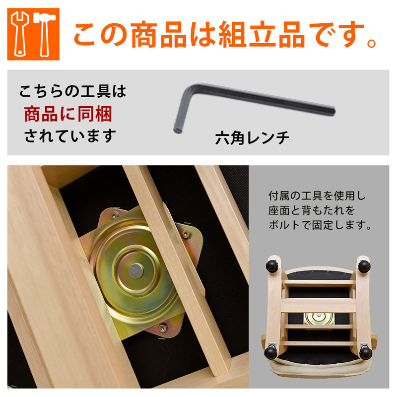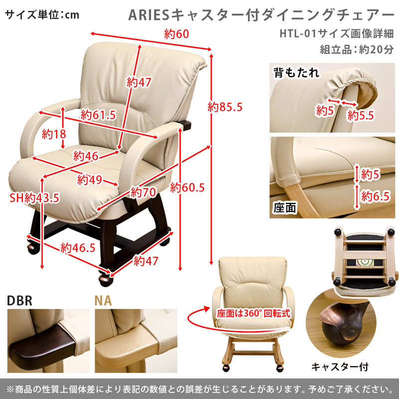 | 商品説明 | 組立品(約20分) しっかりクッションが生み出す快適な座り心地! 回転&キャスター付きで使いやすさも抜群です! ゆったり座れて寛げるダイニングチェアーです。 座面は360°の回転式なので、立ち上がる時もくるっと回転させるだけで楽に立ち上がれます。 キャスターも付いているので、ちょっとした移動にも煩わしさを感じません。 座面はお手入れが簡単な合成皮革で汚れやすいダイニングには嬉しいですね。 ご高齢の方にもオススメな使いやすく座りやすいダイニングチェアーです。 ※こちらは1脚での販売になります。 ※フローリングでご使用の場合、キャスターにより床にへこみや傷がつく恐れがあります。 気になる場合は傷防止シートやマット等との併用をお願いします。 |