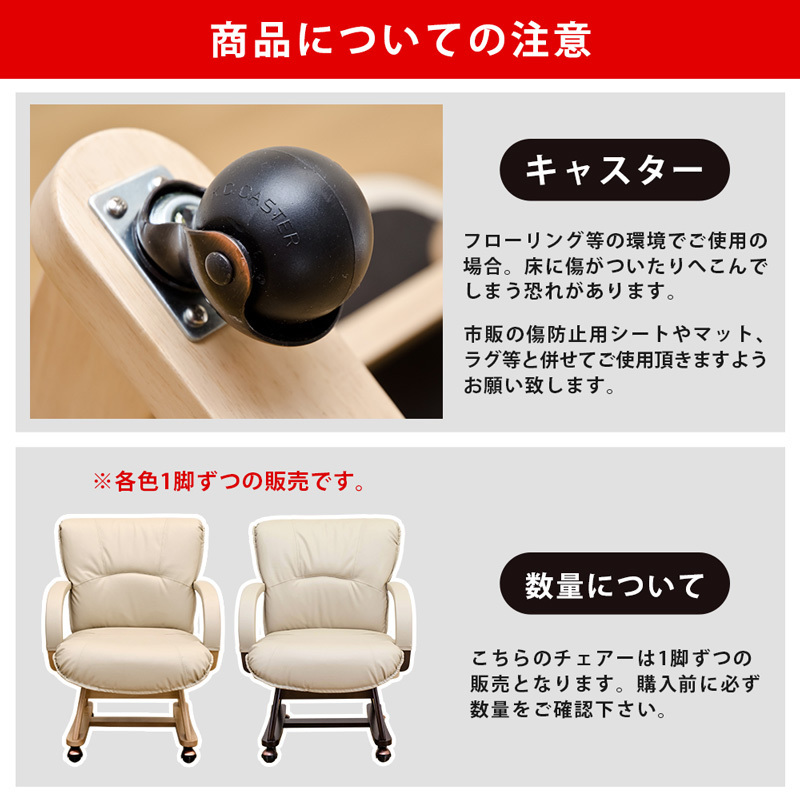 | 材質 | フレーム:天然木(ラバーウッド)アミノアルキド樹脂塗装 張り材:合成皮革(PVC) 中材:ウレタンフォーム キャスター4個 |
