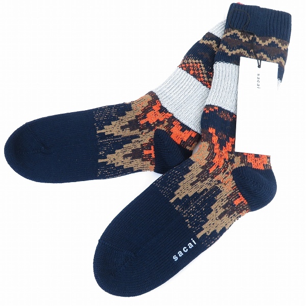 | 商品名 | #we サカイ sacai ソックス 靴下 サイズOS 紺 グレー オレンジ 茶系 フェアアイル柄 厚手 タグ付き 美品 レディース 945926 k01 |