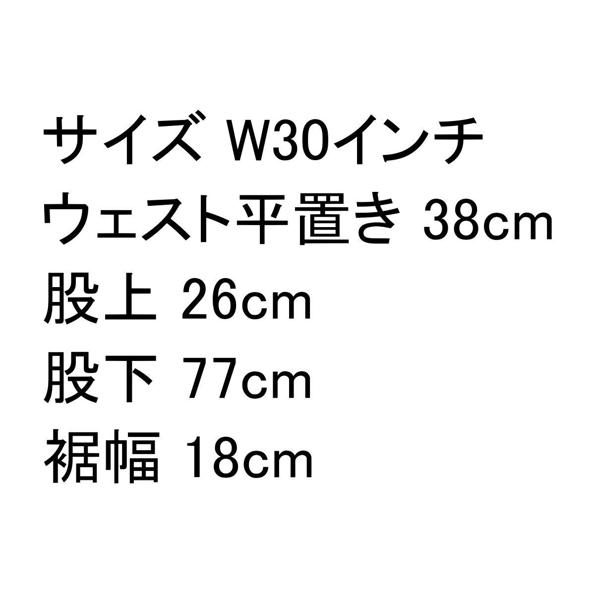 ・サイズW30インチ/ウェスト平置き38cm/股上26cm/股下77cm/裾幅18cm