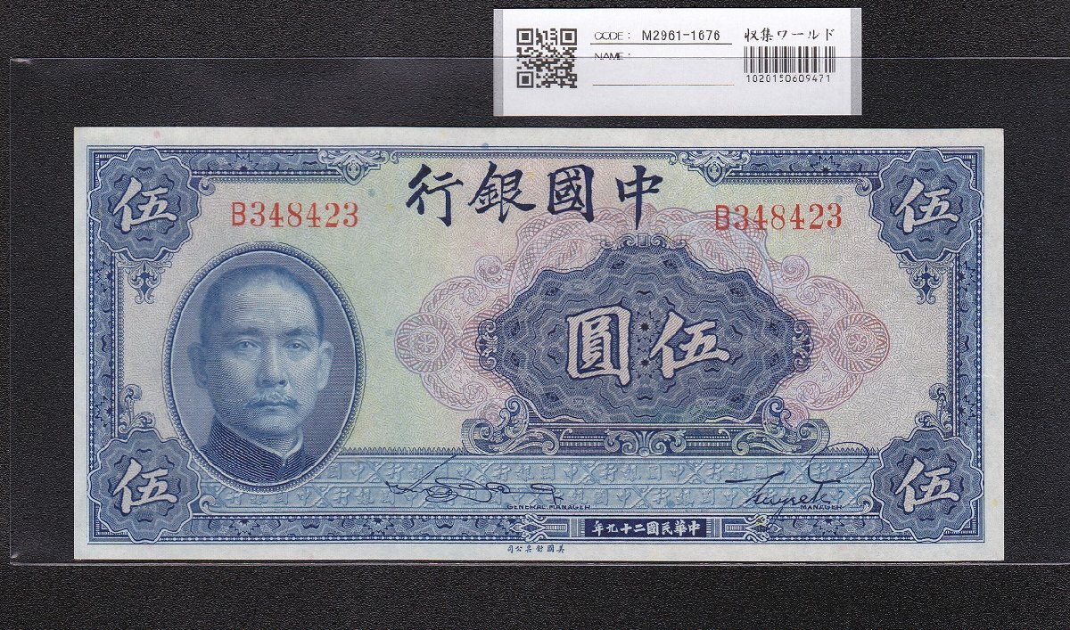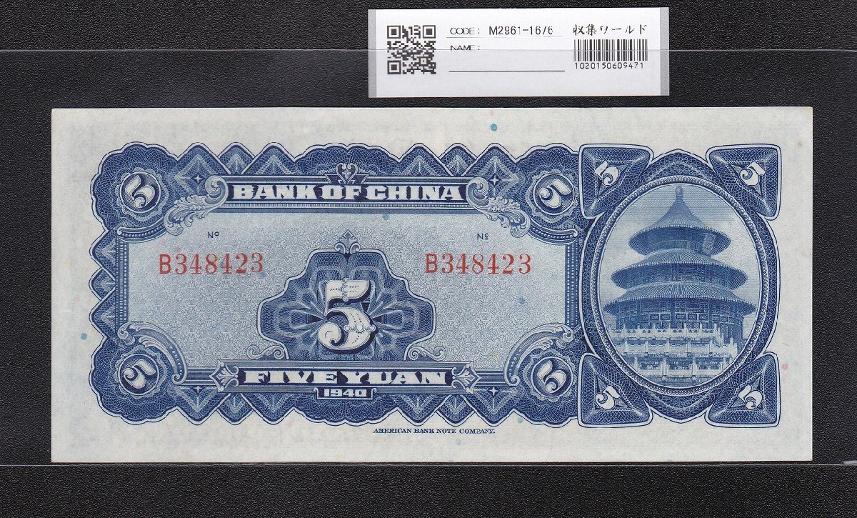 中国銀行 5圓 中華民国29年1940 美国印製 B348423 未使用 収集ワールド