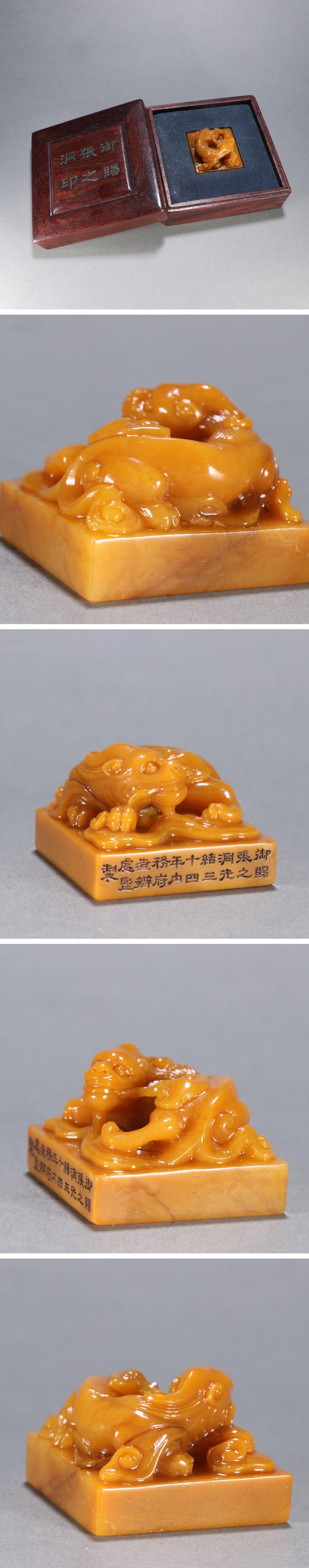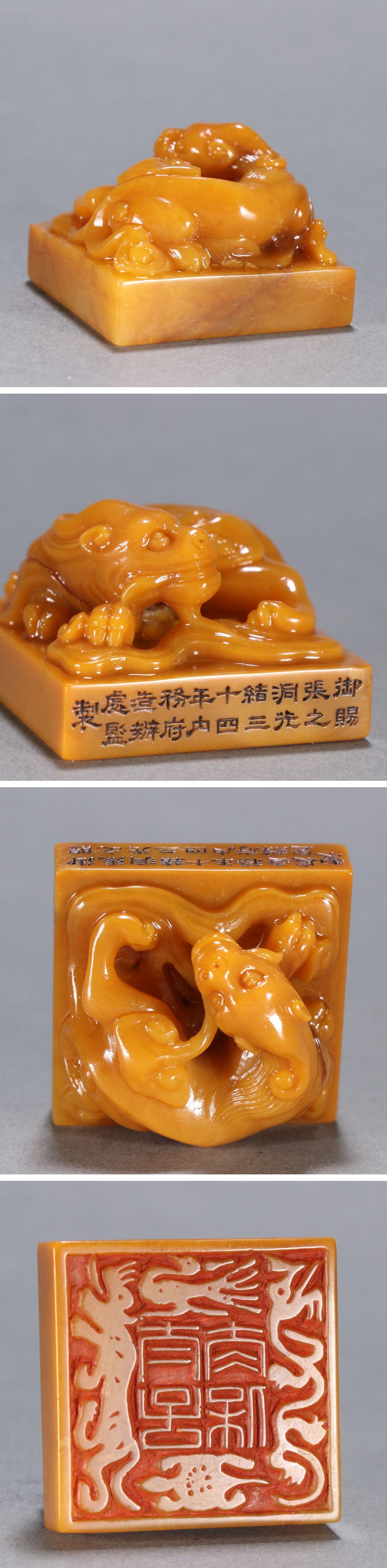 【清】某有名オークション購入 清時代 寿山田黄石 光緒十四年虎紋印章 材質保証 古置物 古擺件 古美術 時代コレクション7L10-FR17