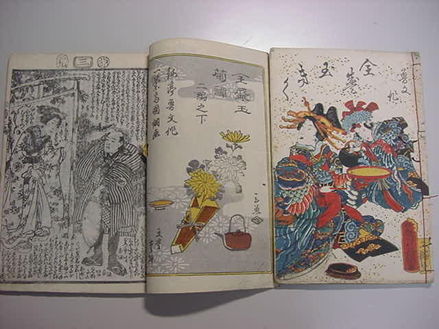 安政7年(1860)に刊行された木版オリジナル和本『全盛玉菊譚』2編、全2冊揃です。名戯作者・仮名垣魯文と一流浮世絵師・歌川国綱による素晴らしいコラボ作品です。表紙絵の色目も極良好です。袋付きはたいへん珍しく貴重です。極少ムシあれど保存状態もよい方です。まず市場には出てこない極めて貴重な江戸絵本をお見逃しなく!