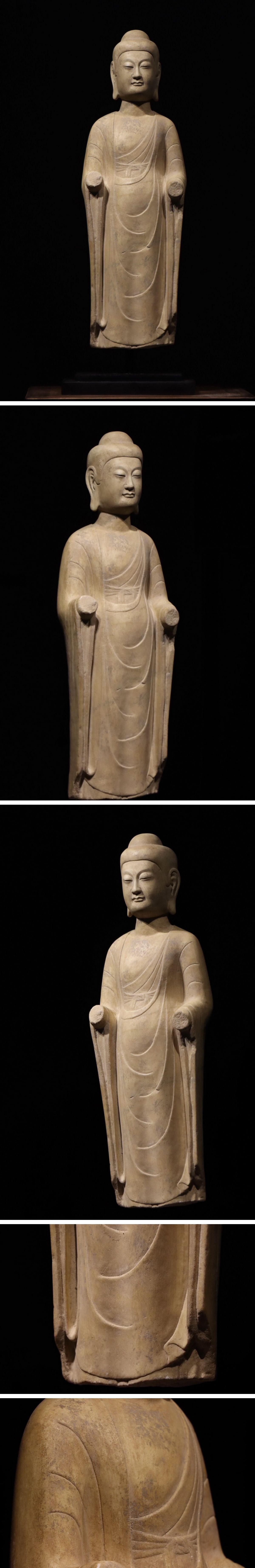 【清】某有名オークション購入 唐時代 漢白玉 阿弥陀如来造像94㎝古置物 古擺件 古美術 時代コレクション7L10-KD7