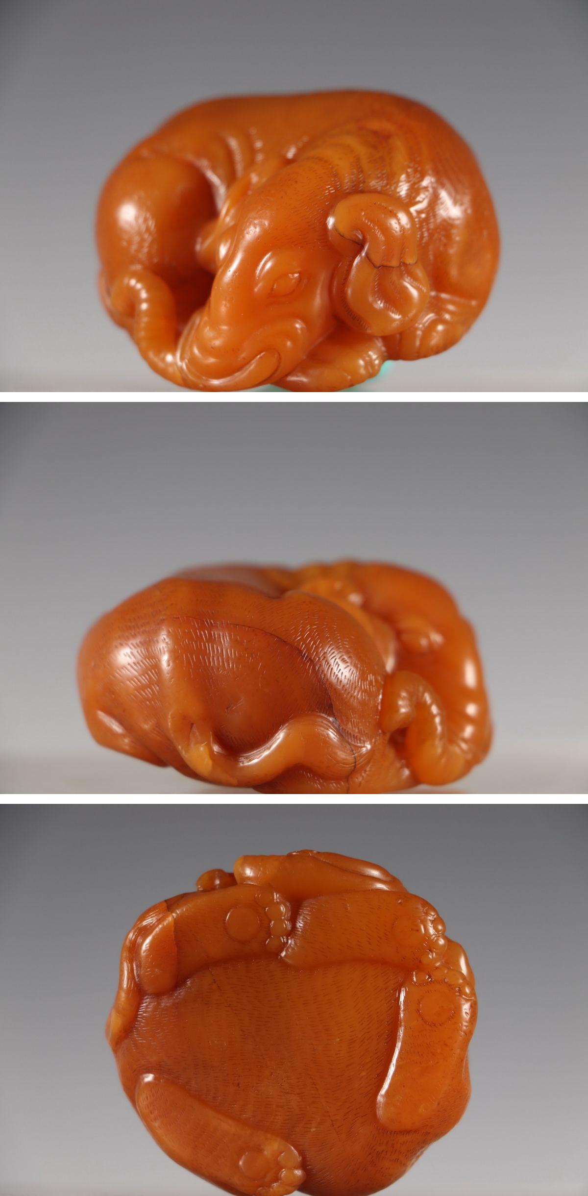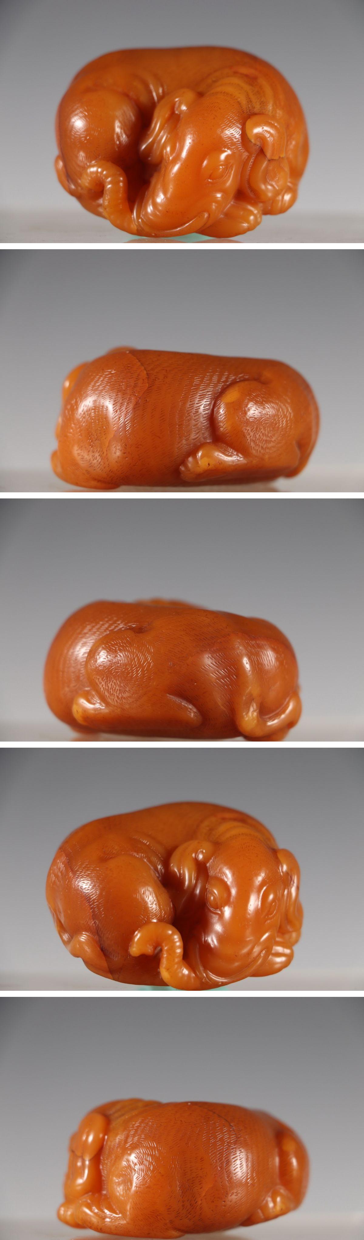 【清】某有名オークション購入 清時代 寿山田黄石 太平有象紋根付 材質保証 古置物 古擺件 古美術 時代コレクション7L10-BD8