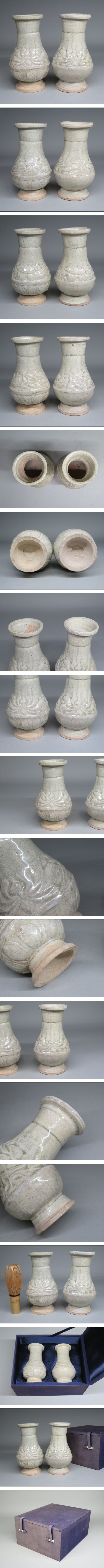 | 宋時代 初期影青釉 刻花青釉小瓶 2点/一対 | ||