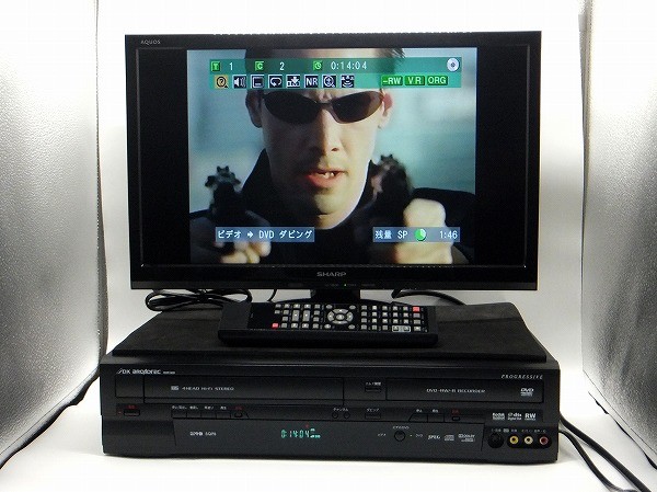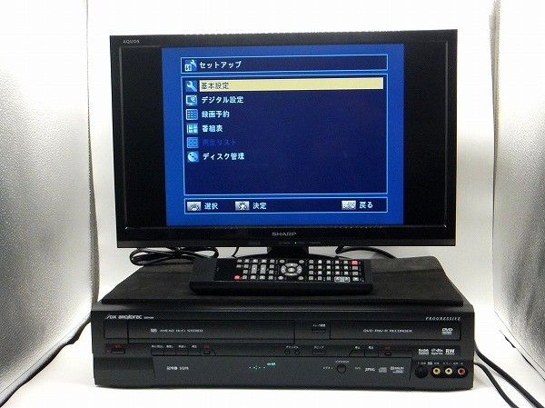 | 商品の説明 | ご覧いただきましてありがとうございます。 「DXアンテナ  地デジ搭載ビデオ一体型DVDレコーダー DXR150V」 の出品です。 こちらはVHSビデオから録画用DVD-R&DVD-RWなどの記憶メディアへダビングができる機種となっております。まずダビングしたいVHSビデオ(コピーガードのかかっていないもの)と録画用DVDをデッキ側に挿入し、リモコンボタンで録画モード(XP・SP・LP等)を選択してから、中央のダビングボタンよりワンタッチで簡単にダビング録画が行えます。また付属リモコンからもダビング録画を同様に行えます。 説明書、B-cas、リモコン、AVケーブル、アンテナケーブル付きです、お品物を受け取ったその日からテレビに接続してご家庭でご使用いただけます。(*旧テレビではなく現行のテレビに関しましては、接続方法など、テレビの説明書などをぜひご参考いただき、事前によくご確認くださいませ)オーバーホールメンテナンス済み(分解整備)で動作チェックも良好な一品です。お受け取り後に万一動作不良があった場合は速やかに対応させていただきますので、その場合は取引ナビへどうぞご連絡くださいませ。お探しの方がいらっしゃいましたらこの機会にぜひどうぞ♪ ーオーバーホール(Overhaul)解説ー こちらのお品物は一度部品単位まで分解した後に,清掃・再組み立て作業をしております。同時に機体の改善・点検も行っております。「オーバーホール済み」とはそれらの整備・点検作業が無事に完了したお品物です。例えばメンテナンスされていない中古品においてはその大半が、外見ではわからないくらい内部は機体が吸い込んだホコリやゴミなどでほぼ汚れております。また長年のご使用による経年変化により、ギヤ部分のグリスが固化し動きが悪くなったり、内部の駆動ベルトが劣化したり、ビデオが詰まって出てこなくなったり、ディスクを読み込まなくなったり、トレイが開かなくなったり、そのさまざまな要因が重なり故障の原因となります。オークションサイトやアマゾン、リサイクル店で中古を購入したら機体内部がホコリで真っ白だったなんてこともよくあります。経験上とくにビデオやレコーダー系のデッキでファン内臓の物は、中にホコリや雑菌の巣窟となっている場合も少なくありません。ファンから噴き出す匂いなども伴い衛生的にもあまりよろしくはありません。当方は機体をすべて分解した後に、機体の一番下の鉄板プレートのベースから順々にクリーニングを実施し、再組立てと点検を行い丁寧に仕上げております。オーバーホール整備後はまず機体本体がずみずみまでピカピカになり、各部の動きもスムーズとなり、より安定した動作状況下でご使用いただけることと思っております。 ![]() ![]() 【動作チェック】  ★☆ 動作確認はすべて当方手持ちの品物にて取り行っております ★☆ ![]() (VHSビデオからDVDへビデオダビング中) ![]() ![]() ![]() (メインメニュー画面) ![]() (フォーマットやファイナライズもOK、動作確認済みです) <主な動作チェック項目> 〇VHSビデオ再生・再生送り・再生戻し・一時停止・早送り・巻き戻し・停止【基本動作OK】 〇DVDビデオ再生・再生送り・再生戻し・一時停止・早送り・巻き戻し・停止【基本動作OK】 〇VHSビデオ ⇒ DVD-R(CPRM対応)DVD-RW(CPRM対応)【ダビングチェックOK】〇DVD-R(コピーガード無し映像) ⇒ VHSビデオ 【逆方向ダビングチェックOK】 〇録画用DVD-R・DVD-RWディスクのフォーマット・ファイナライズ【OK】 〇市販品ならびにレンタルDVDソフトの再生・その他音楽CDの再生【OK】 〇地デジチャンネル設定後、録画用DVDならびにVHSビデオへ直接番組録画【OK】 〇リモコンから番組表ボタンよりタイマー予約録画【OK】 〇本体ならびにリモコンの各ボタンのチェック【OK】 〇ビデオ挿入・取り出しならびにDVDトレイ開閉チェック【OK】 〇ビデオやDVD再生時の映像出力モニターチェック【OK】 *当方出品物デッキの「ビデオ⇒DVD ダビングテスト」は、再生時間が1時間30分~2時間程度のVHSビデオにて、整備後毎回3~5本 「ビデオ ⇒ DVD」 のダビングの動作確認を行っております。 *コピーガード信号の入ったビデオソフトやDVDソフトは、機体仕様上ダビングはできません。 *当方のダビングチェックではメーカー推奨の「DVD-R」と「DVD-RW」の2種両方の録画用DVDディスクにてダビング動作を確認済みです。 *使用のメディアは三菱ケミカルメディア(I・O DATA)【バーベイタム】DVD-R(CPRM対応) DVD-RW(CPRM対応) にてダビングチェック動作確認済みです。 *こちらのデッキはテレビやモニターへの接続はHDMIケーブルは非対応になります。メインは3色(赤白黄)AVケーブルでの接続です予めご了承くださいませ。 *なおこちらのデッキは簡易地上デジタルチューナー搭載機で、現在デジタル放送録画にも対応しております。地デジ受信設定(東京)や番組録画もチェックOKでした。ハードディスク非搭載機なので番組を録画用DVDディスクにそのまま直録画できます。 *上記説明以