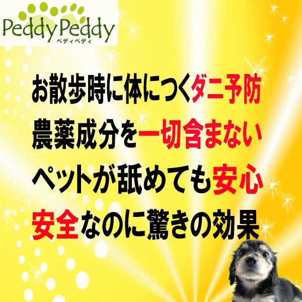 | 商品名 : ぺディぺディ ハーブ スプレー 犬猫用防虫&被毛ケア全身用スプレー 天然ハーブ100%で出来ており、とっても安心してお使い頂けるペット用虫除けスプレーです。お散歩前には忘れずにぺディぺディハーブをシュッシュッとどうぞ… 草むら等に入った時に虫が付くの防ぐ為、お家やベッド等への持ち帰り害虫の防止になりますよ! ぺディぺディハーブは農薬成分を一切使用せず天然ハーブ100%で出来ている安全で安心なペット用虫除け剤(経口毒性試験では、砂糖より安全という結果が得ております。) 独自の経験と技術で厳選した天然ハーブ数種類を使用し、犬や猫などペットの体に寄生するダニやノミ、蚊のような害虫から身を守り、忌避効果を最大限にあげました。害虫からの病気の感染を防ぎ、ペットが快適に過ごせます。また高品質のアロマテラピー(リラックス)効果もあり、ペットのストレス予防にも役立ちます。 ![]() ・お散歩の前にシュシュッとスプレーするだけのお手軽さ! ・ぺディぺディハーブ1回のスプレーで約2~3日効果が持続! ・肌が弱い仔犬・仔猫・ウサギ・ハムスター・小鳥にもお使い頂けます。 ・虫除けの時だけでなく、日常のブラッシングの時もぺディぺディ ハーブをご利用下さい。 長年、ハーブの研究によって誕生した【ハーブ】 レモングラス・ユーカリ・ミントが主成分ですが、調合率や独自の製造方法によって、他社には真似の出来ない安全性の高さと、忌避効果の高さを実現した商品です。 スプレー後は、天然ハーブの香りがしますが、アロマエッセンシャルオイルではありませんので早々に香りはやわらかくなり、その後消えてなくなってしまいます。しかし、ぺディぺディ ハーブの微粒子が被毛に残り、人には感じない成分で数日間虫除け効果を持続します。しかもうれしい事に、べたつかずにすぐに「さらっと感」が出てくるのはうれしいですね… ![]() ・内容量 : 200ml入 ・分 類: ペット用虫除け剤 ・成 分: ハーブ類(レモングラス・ユーカリ・ミント)、インドセンダン(ニーム)、キトサン、グレープフルーツ種子、精製水 ・液 性: 弱酸性 ・使用方法: ペットの衣類・タオル・ハウス・ベット・敷物などにスプレーして下さい。 綿布などに液を含ませ、ペットの体の表面を軽く拭うとより効果が増します。 ・安全性: 参考データ:HERBの安全性について |