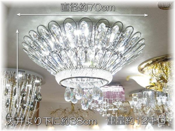 | 商品説明 | ![]() 【送料無料!】★超激安販売★新品・スワロフスキー風クリスタルシャンデリア ●LEDダウンライトを12灯(¥18000-相当)お付けいたしまして驚きのプライス! ●消費電力わずか60ワットで600ワットの明るさ! ●リモコン操作でさらに省エネ! リモコンも付属しており12灯全灯~8灯~4灯~消灯の切り替えが可能です 新品・スワロフスキー風クリスタルシャンデリア スワロフスキー風上質水晶ならではの最高の輝きを放つ新品クリスタルシャンデリア 添付画像では肉眼で見る本来のクリスタルの輝きをご確認いただけませんが、12灯のLEDダウンライトが上質クリスタル水晶を通し光の屈折で光の持つ本来のカラーをかもし出しダイヤモンドのように輝きながらお部屋全体を照らします スタイルは飽きの来ないシンプルなデザインです またリモコンも付属しており 12灯全灯~8灯~4灯~消灯の切り替えが可能です リビング・店舗等に最適なゴージャスクリスタルシャンデリアを是非この機会に! 付属電球・・・LEDダウンライト12個(明るさ50ワット消費電力5ワット) 商品ご注文後LED発光色 白色又は暖色 をお選び頂きご連絡お願い致します 商品画像は白色LEDダウンライトを装着し撮影しております 電球の交換は簡易に取り外し可能です 調光ご希望の場合は調光対応LED(1個¥200-アップ)が必要です サイズ・直径約70cm 高さ約38cm 重量約12キロです ![]() |