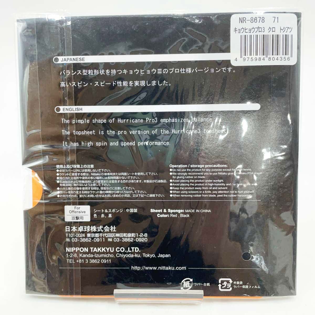 | ※商品は画像にあるものがすべてとなります。 【仕様】 ブランド:ニッタク タイプ:DHS キョウヒョウ プロ PRO 3 裏ソフトラバー NR-8678 黒 特厚 |