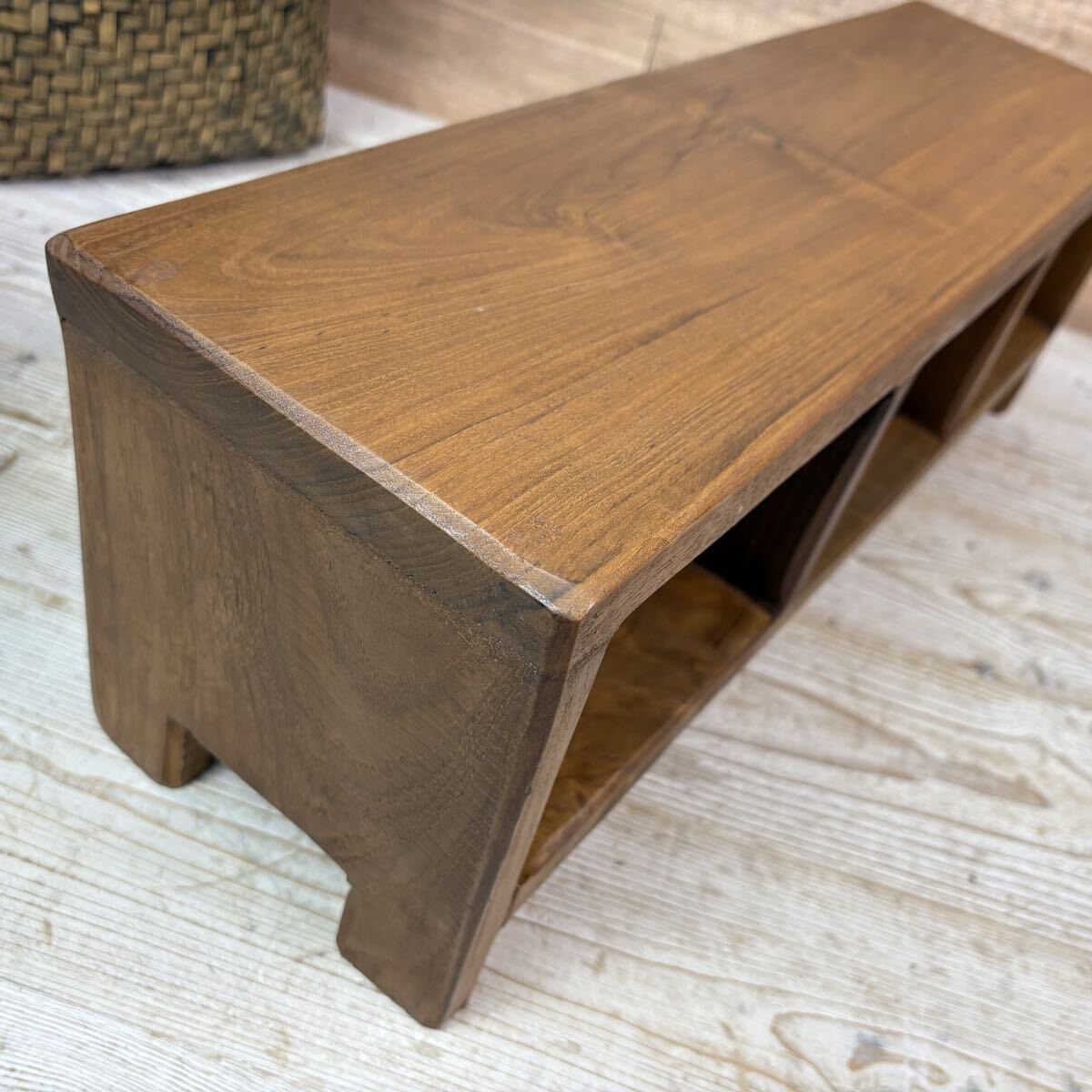 | ◆◇商品詳細◇◆ チークミニラック横長 材質は世界三大銘木のチーク材で、美しい木目と強靭な耐久力が特徴の高級材です。オールドチーク無垢材を使用しているため木目に深みがあります。ずっしりとした重みのあるお品です。頑丈で、使い込むと深みが増していくため長年お使いいただけます!飾り台、置台にはもちろん、花台やショップのディスプレイなど使い方は様々です!天然無垢材なので和室洋室どんなお部屋にも合いますよ。世界にひとつだけの形をお楽しみください。人気商品が今だけ送料無料のこの価格!他では買えない商品をぜひこの機会に♪ 【商品状態説明】 こちらの商品はインドネシア輸入品になります。 天然の古木(オールドチーク)を使用して制作された商品です。古木を使用している商品の為、キズ、色むら、少々のひび割れなどがある場合がございます。 ※使用には問題なく、天然の味わいをお楽しみいただける品ですが、古木の特質(キズなど)ご理解頂ける方のみご購入お願いいたします。画像の現品を発送いたします。 【サイズ】 横幅:約52㎝ 奥行:約16㎝ 高さ:約18㎝ 一マス内寸約横14㎝縦11㎝ 【素材】 オールドチーク 【カラー】 ブラウン | ◆◇発送方法◇◆ ●送料は基本無料ですが、沖縄・離島などにお住まいの方はご負担ください。 (沖縄・離島の方はメールにてご連絡いただければ、送料をお知らせいたします。) ●ヤマト運輸・佐川急便・第一貨物のいずれかにて配送いたします。 (運送会社の指定はできません。ご了承ください。) ●日時・時間指定のある方や、お問い合わせ(追跡)番号をご希望の方は取引連絡の際にお知らせください。 | |